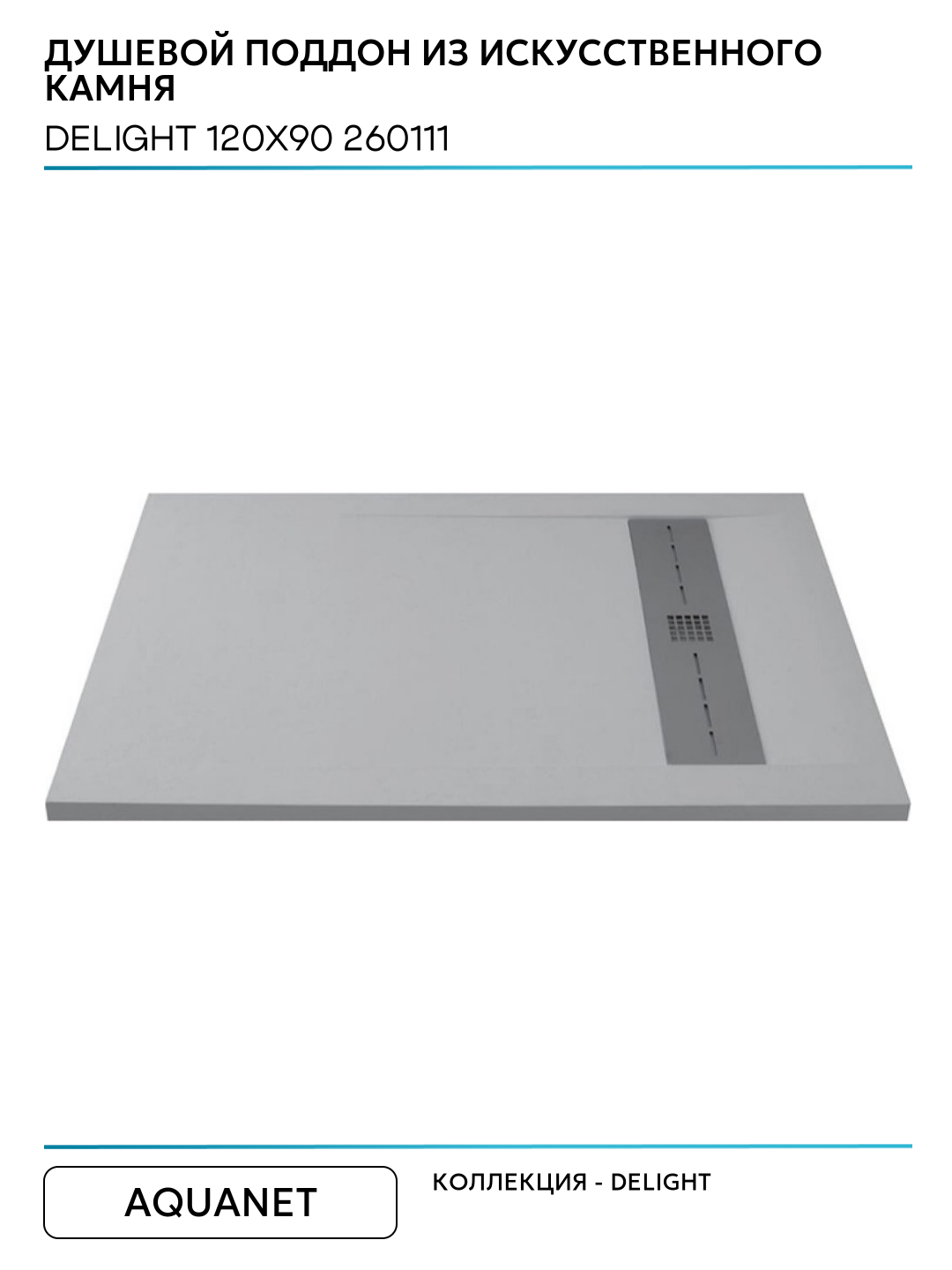 Купить Душевой поддон из искусственного камня Aquanet Delight 120×90 260111 Серый искусственный камень 120х90 с доставкой по всей России.
