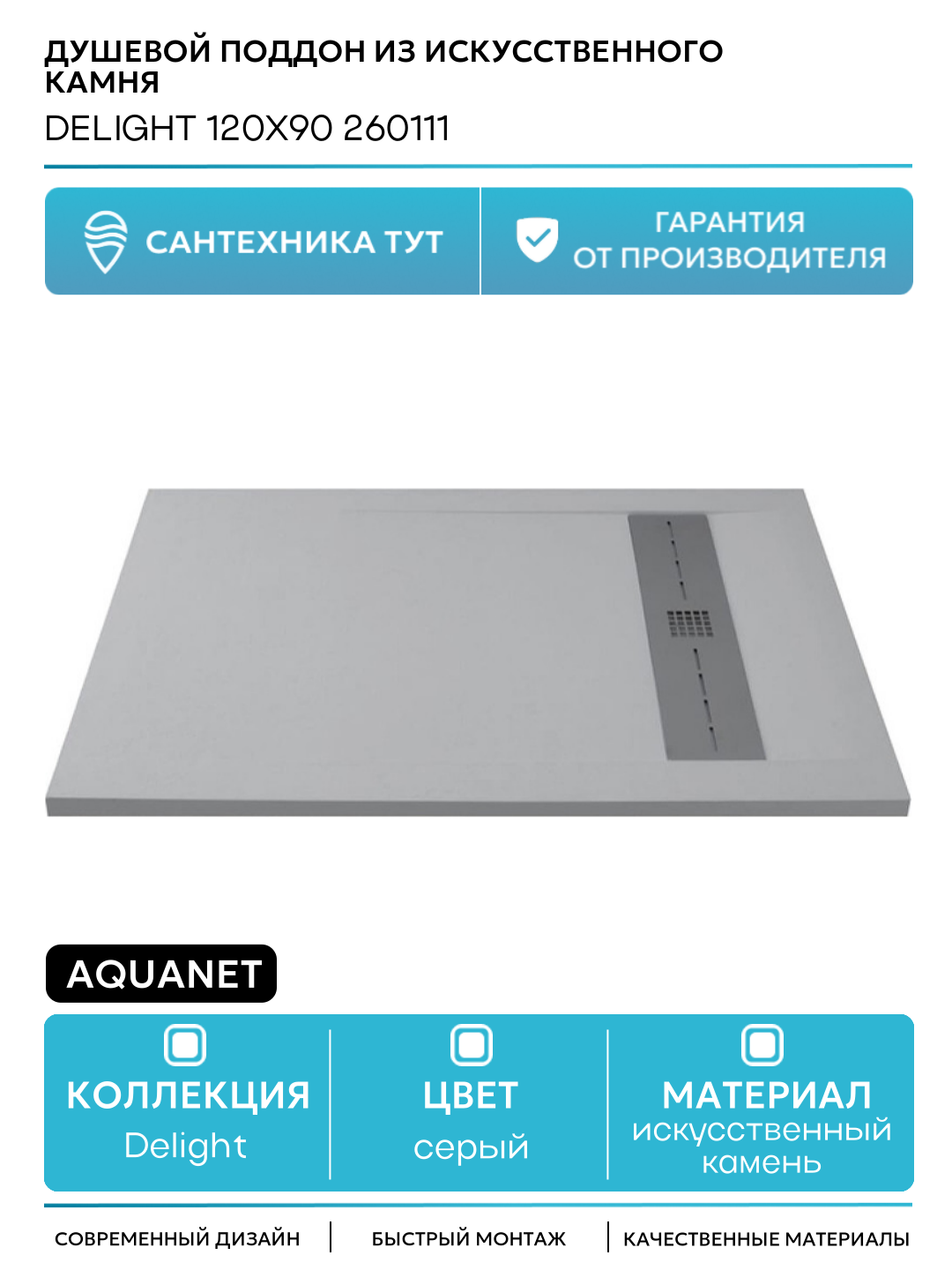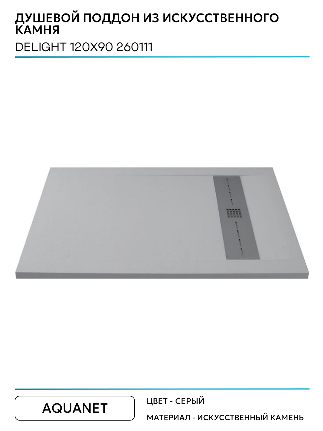 Душевой поддон из искусственного камня Aquanet Delight 120×90 260111 Серый искусственный камень 120х90: сравнение цен, характеристики, фото, актуальное наличие и цены.