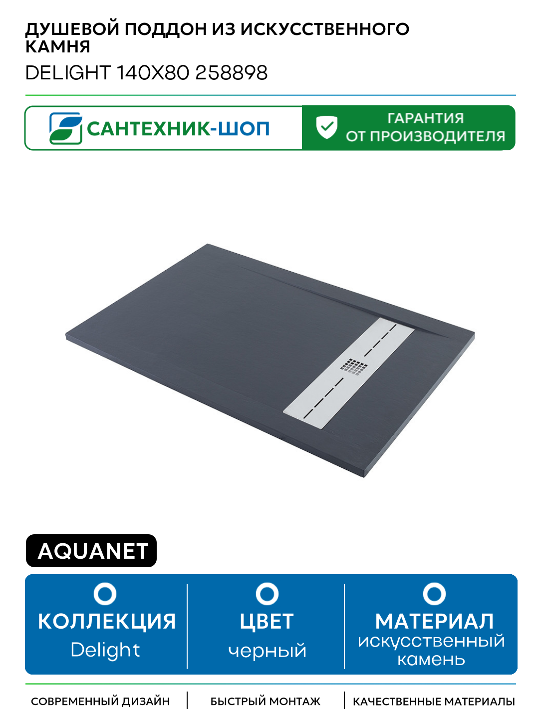 Душевой поддон из искусственного камня Aquanet Delight 140×80 258898 Черный искусственный камень 140х80: сравнение цен, характеристики, фото, актуальное наличие и цены.