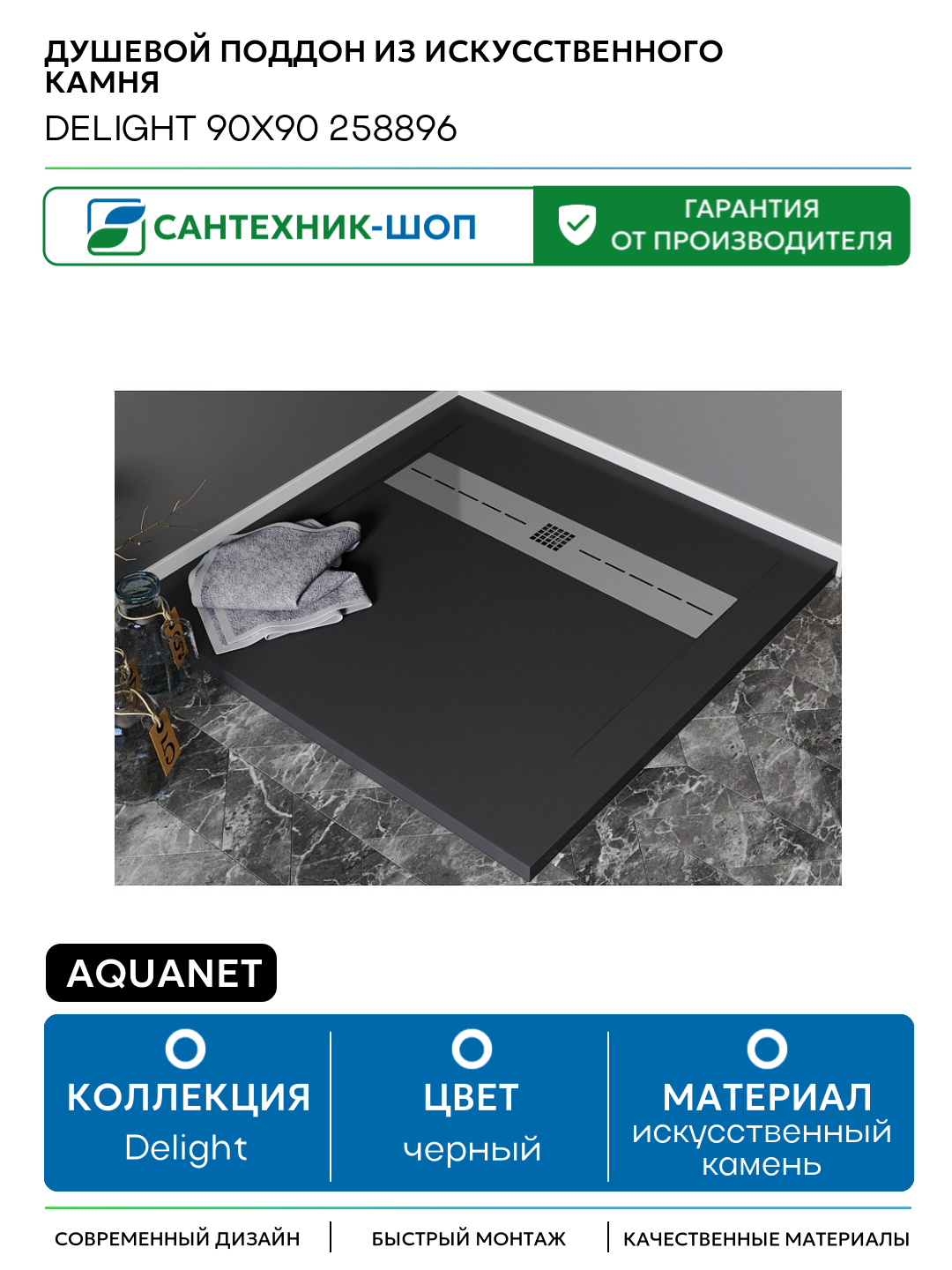 Душевой поддон из искусственного камня Aquanet Delight 90×90 258896 Черный искусственный камень 90х90: сравнение цен, характеристики, фото, актуальное наличие и цены.