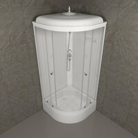 Полукруглый душевой поддон тм ARAGUT 100х100 по всей площади дна имеется закладной элемент толщиной 16мм, что обеспечивает надежность и устойчивость конструкции, устанавливается на стальной оцинкованный каркас из П-образного открытого профиля, исключающий задерживания влаги и появление коррозии. Прост в установке, надежен в эксплуатации, неприхотлив в уходе. Высота поддона от пола до верхнего борта поддона 31см, глубина поддона в районе слива 20см. Поддон на каркасе выдерживает нагрузку 500кг. Поставляется поддон в комплекте с каркасом и съемным экраном. Диаметр сливного отверстия 50мм. Сифон приобретается отдельно (Артикул Маркета 4370571009)