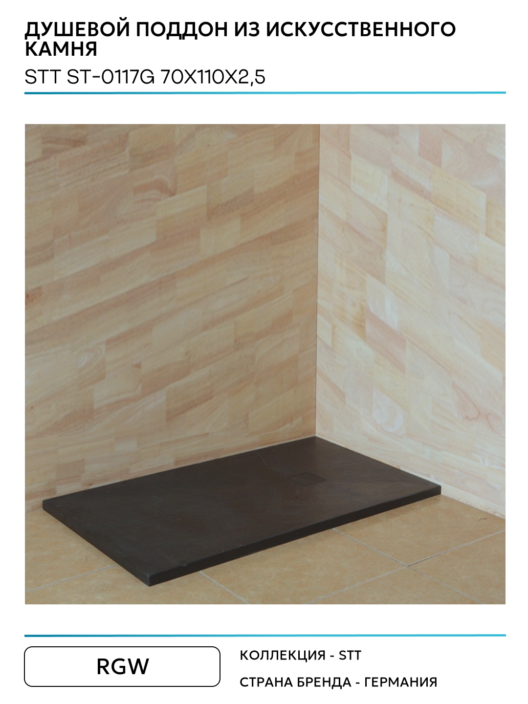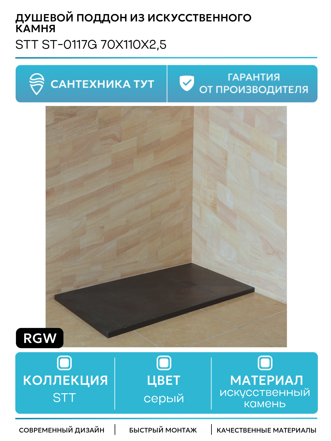 Душевой поддон из искусственного камня RGW STT ST-0117G 70x110x2,5 Серый искусственный камень Германия: сравнение цен, характеристики, фото, актуальное наличие и цены.