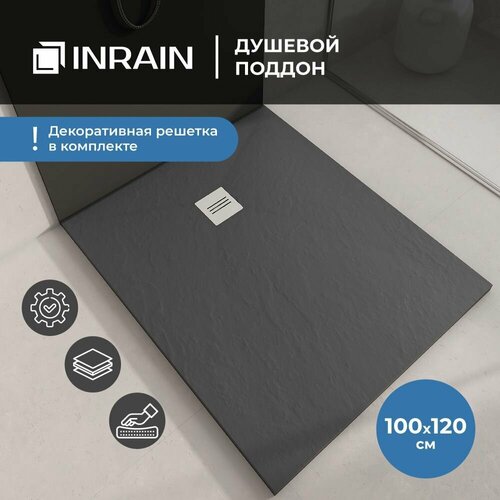 Премиальный поддон для душа INRAIN из искусственного камня прямоугольный 100х120×3см Графит с решеткой на сифон: сравнение цен, характеристики, фото, актуальное наличие и цены.