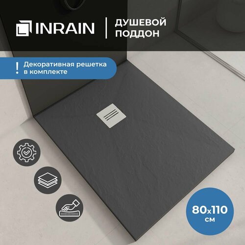 Премиальный поддон для душа INRAIN из искусственного камня прямоугольный 80х110х3 Графит с решеткой на сифон: сравнение цен, характеристики, фото, актуальное наличие и цены.