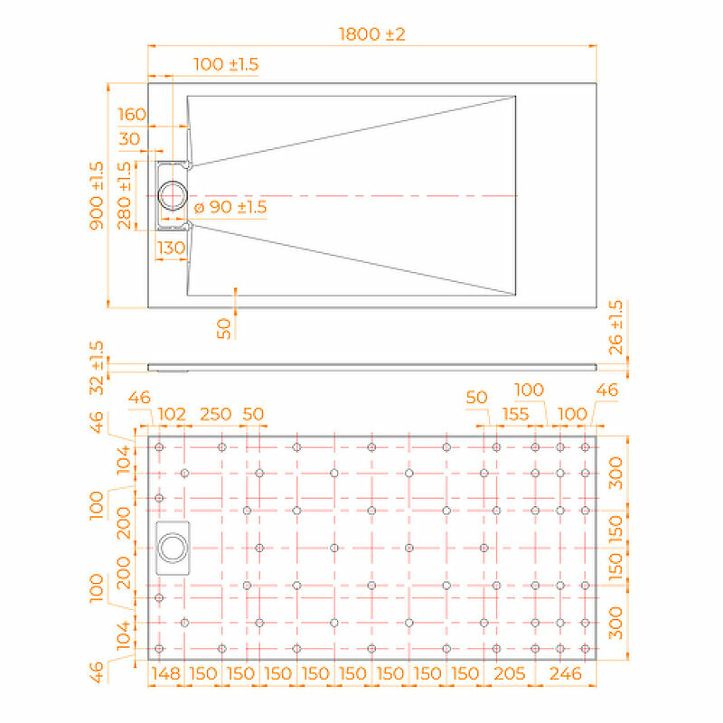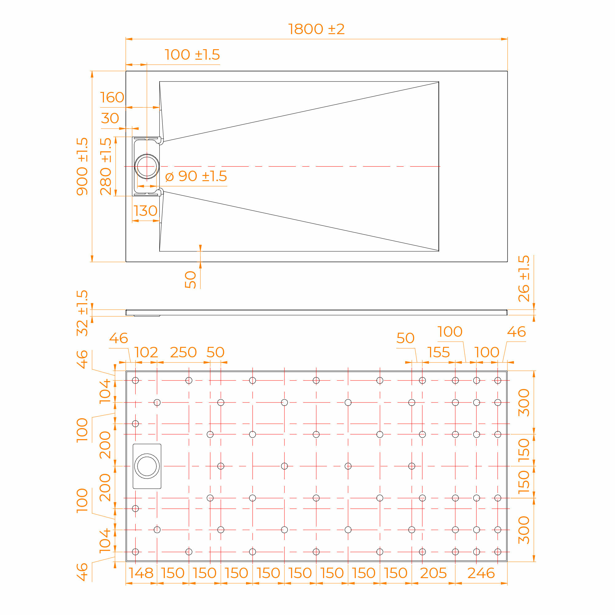 Весовая нагрузка до 180 кг,Крышка сифона в цвет поддона,Низкий уровень шума поверхности,Теплая поверхность,Технический уклон поддона для стока воды