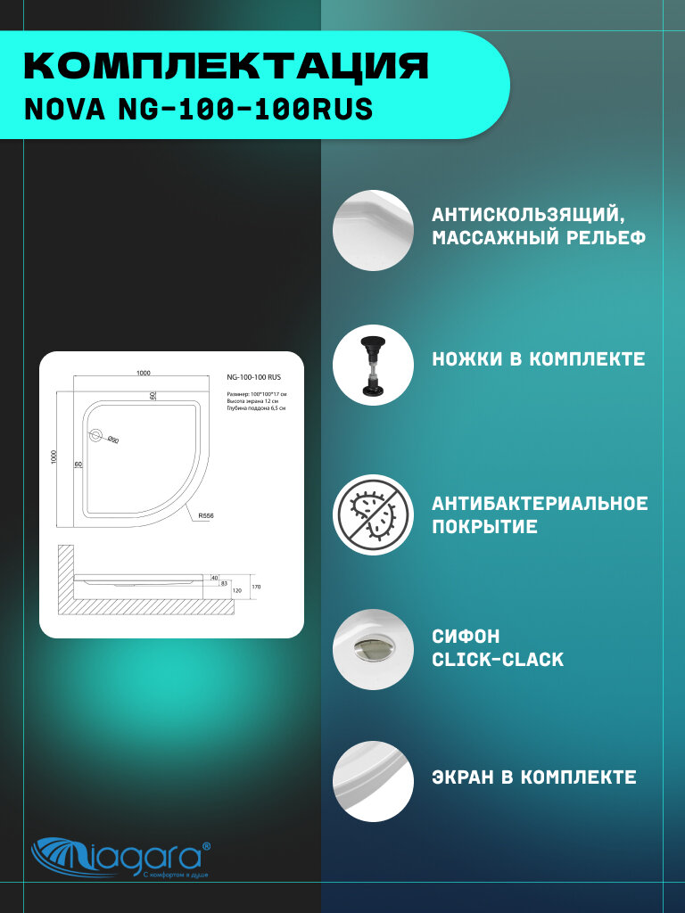 Купить Душевой поддон Niagara Nova NG-100-100RUS (100х100х17) четверть круга, белый,1 место с доставкой по всей России. Душевой поддон Niagara Nova NG-100-100RUS (100х100х17) четверть круга, белый,1 место: сравнение цен, характеристики, фото, актуальное наличие и цены.