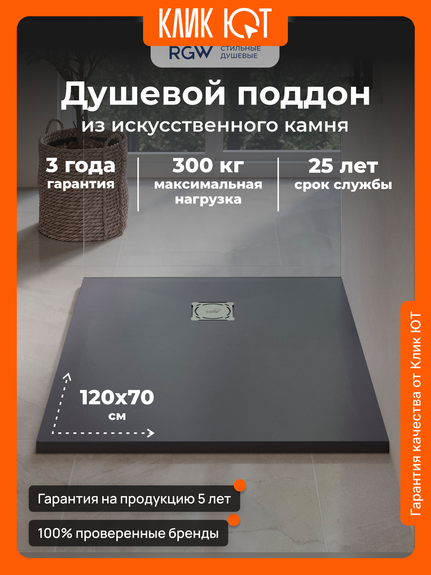 Купить Поддон для душа из искусственного камня RGW ST-G 70*120 Графит с доставкой по всей России. Поддон для душа из искусственного камня RGW ST-G 70*120 Графит: сравнение цен, характеристики, фото, актуальное наличие и цены.