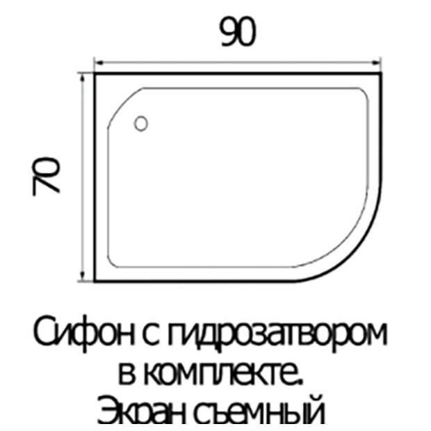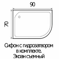 Поддон для душа акриловый (ABS-пластик) полукруг, размер 90x70 см, Высота-24 см. Глубина - 12 см. Экран съемный. Поддон ассиметричный с регулируемой высотой ножек В комплекте с сифоном, экраном и регулируемой высотой ножек, сифон с гидрозатвором. Есть ловушка для волос. Легкий доступ к коммуникациям. Душевой поддон Wemor надолго сохранит свою первоначальную белизну и блеск – акрил не желтеет и не трескается со временем. Легко поддерживать его чистоту - акрил отталкивает загрязнения и без усилий очищается салфеткой и мыльным раствором. Качественный акрил гарантирует долговечность изделия. Поддон изготовлен из специального материала с антибактериальными свойствами, которые предотвращают рост и размножение бактерий и грибков. В комплект входят пять регулируемых по высоте ножек. С их помощью возможна надежная установка поддона даже на поверхности, имеющей неровности и уклоны.