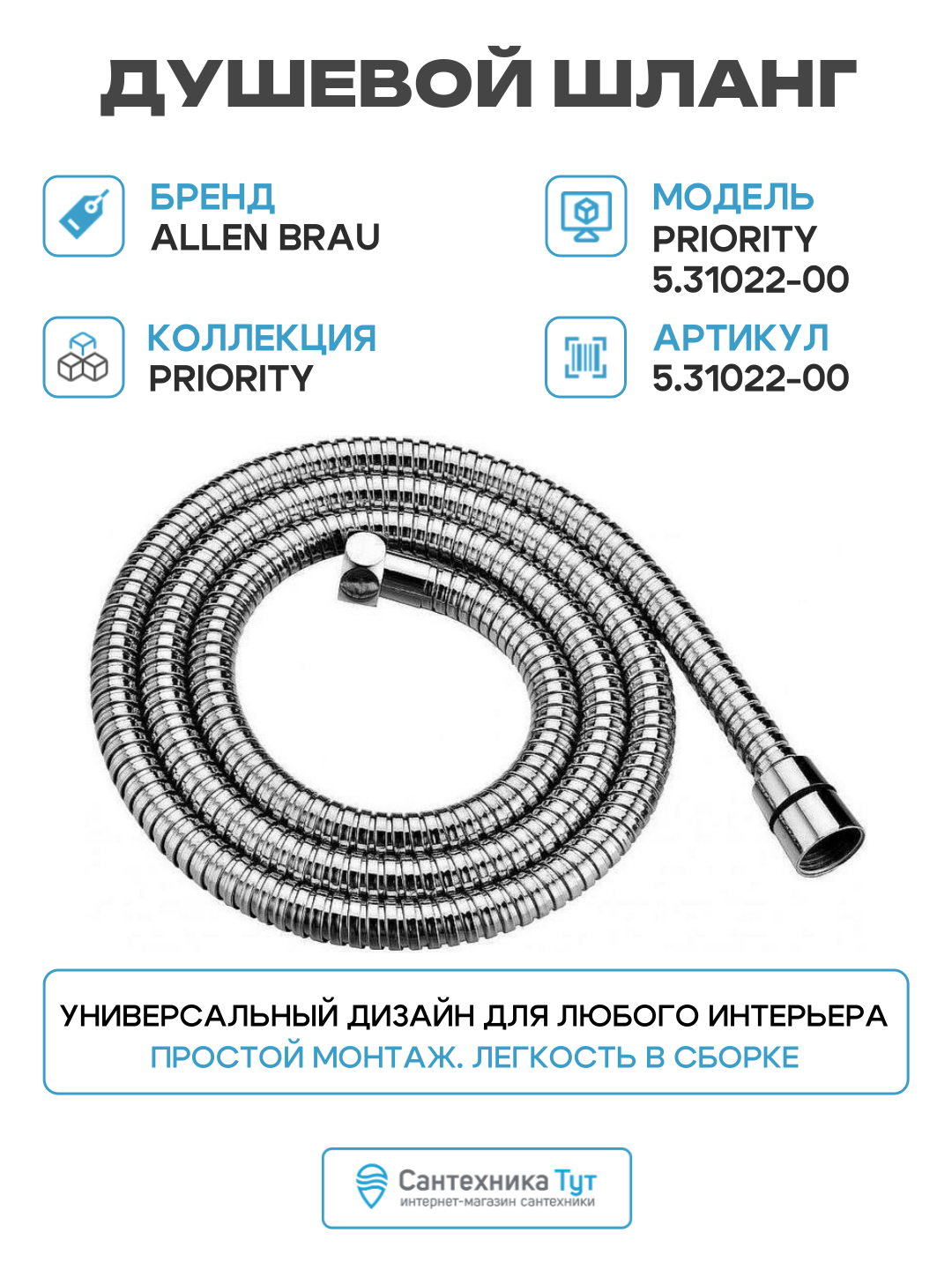 Душевой шланг Allen Brau Priority 5.31022-00 Хром, современный стиль: сравнение цен, характеристики, фото, актуальное наличие и цены.