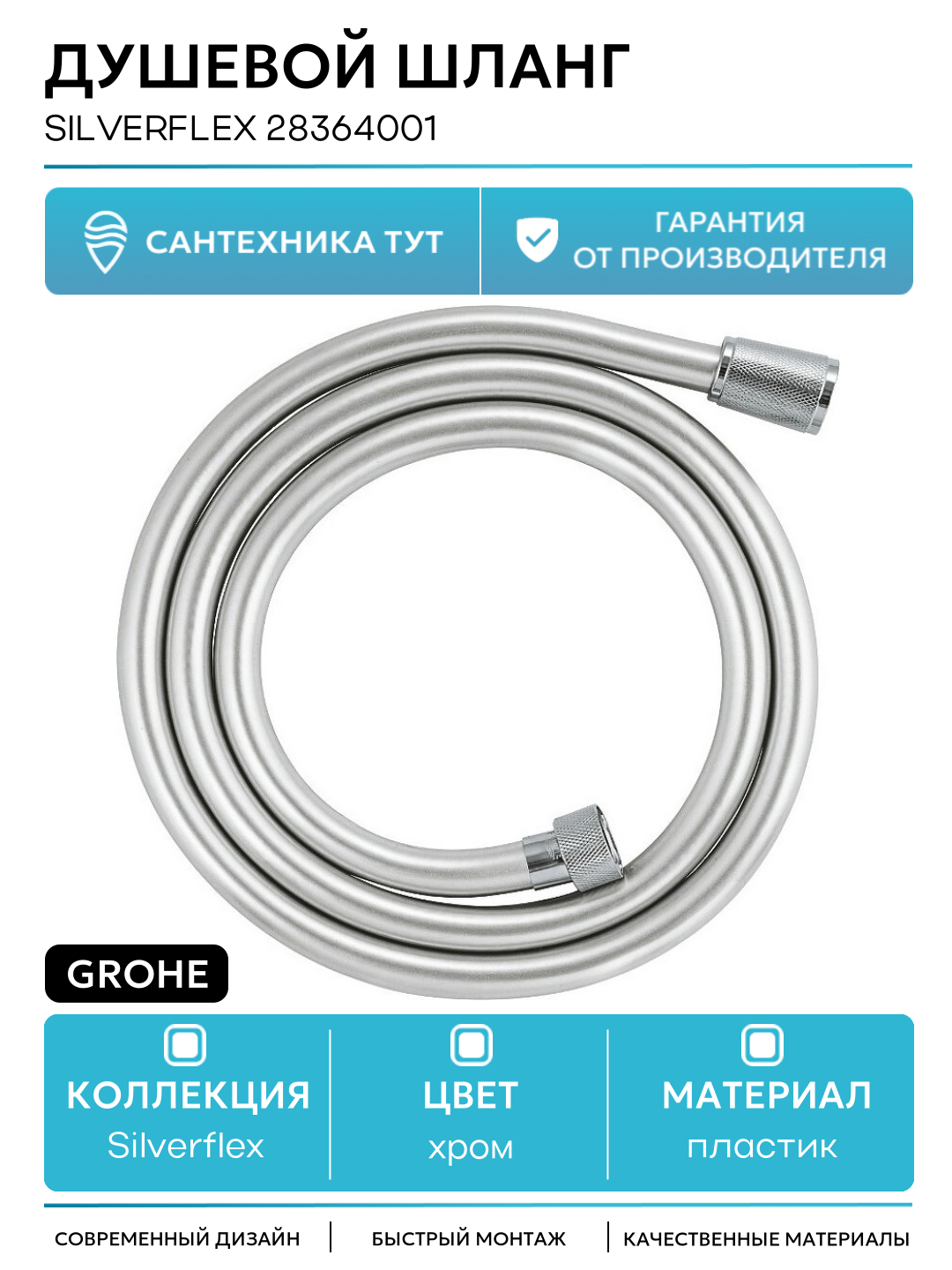 Купить Душевой шланг Grohe Silverflex 28364001 пластиковый, с антискручиванием с доставкой по всей России. Душевой шланг Grohe Silverflex 28364001 пластиковый, с антискручиванием: сравнение цен, характеристики, фото, актуальное наличие и цены.