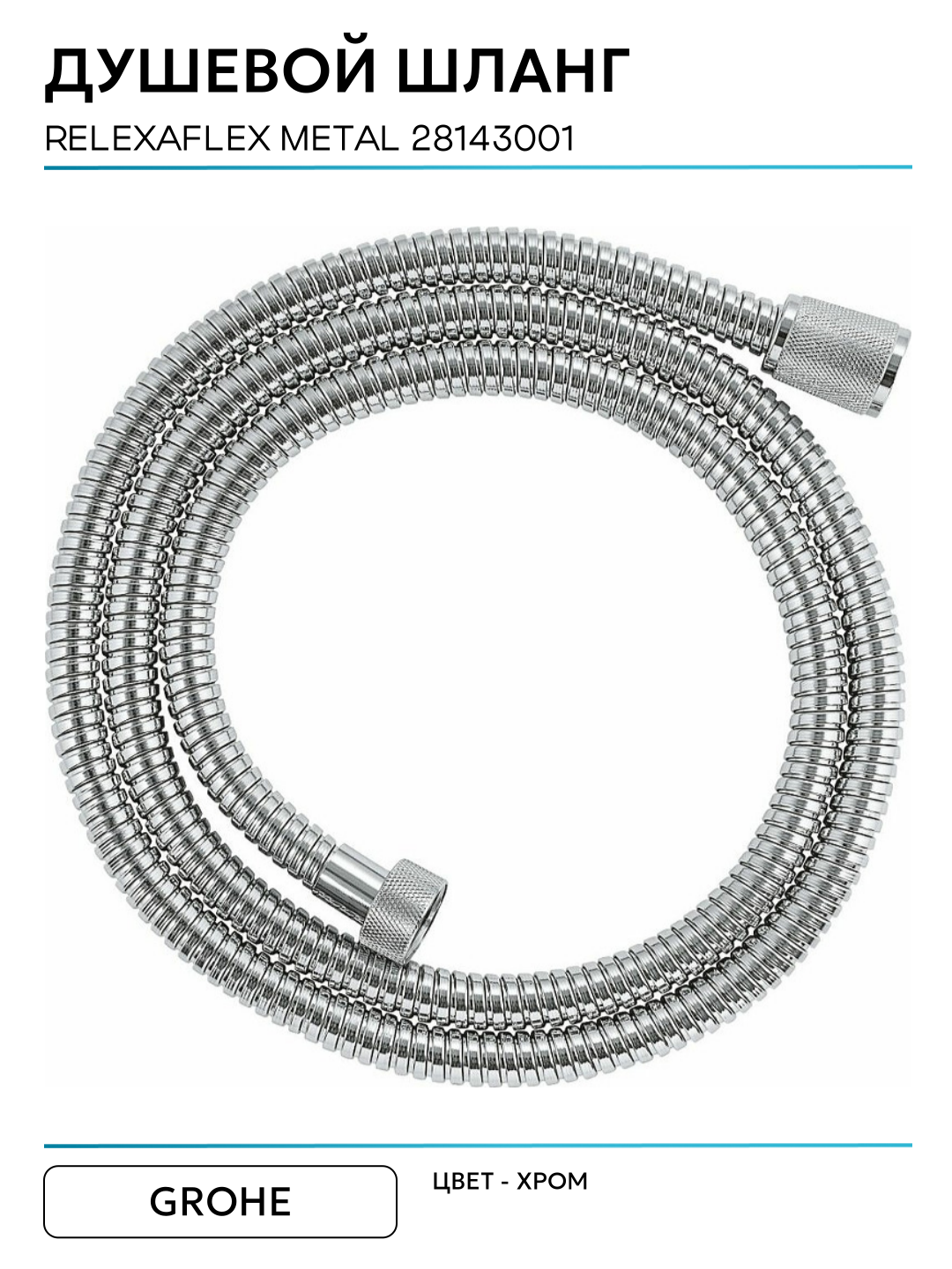 Душевой шланг Grohe Relexaflex Metal Long-Life 28143001 с антискручиванием: сравнение цен, характеристики, фото, актуальное наличие и цены.