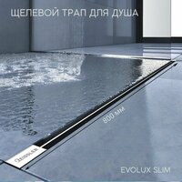 Щелевой трап для душа под плитку ультратонкая модель с дизайн-вставкой Evolux Slim 800*20 ZEISSLER (душевой трап гидро-затвор фланец 360°C) 80 см ZSt.1141.8002