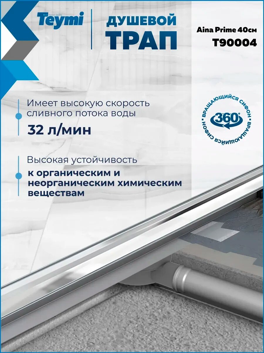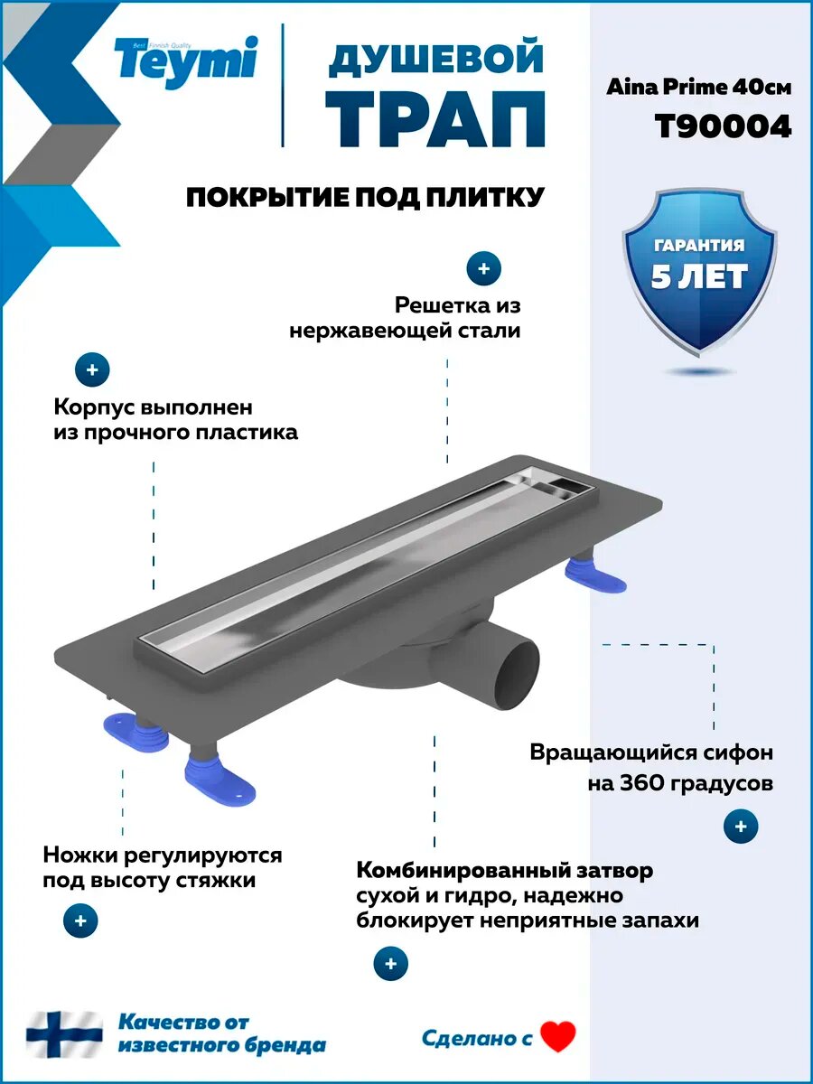 Купить Трап для душа под плитку с комбинированным гидрозатвором Teymi Aina Prime 40 см T90004 с доставкой по всей России.