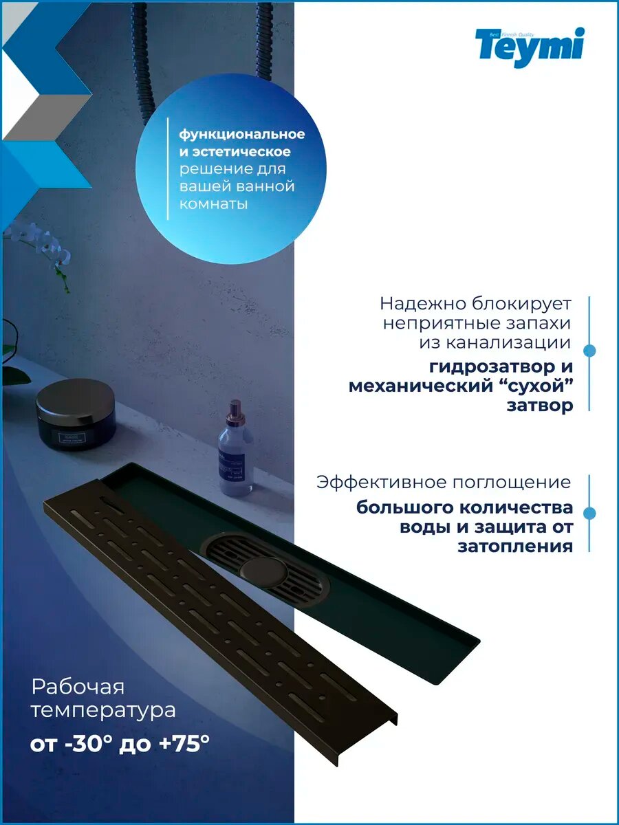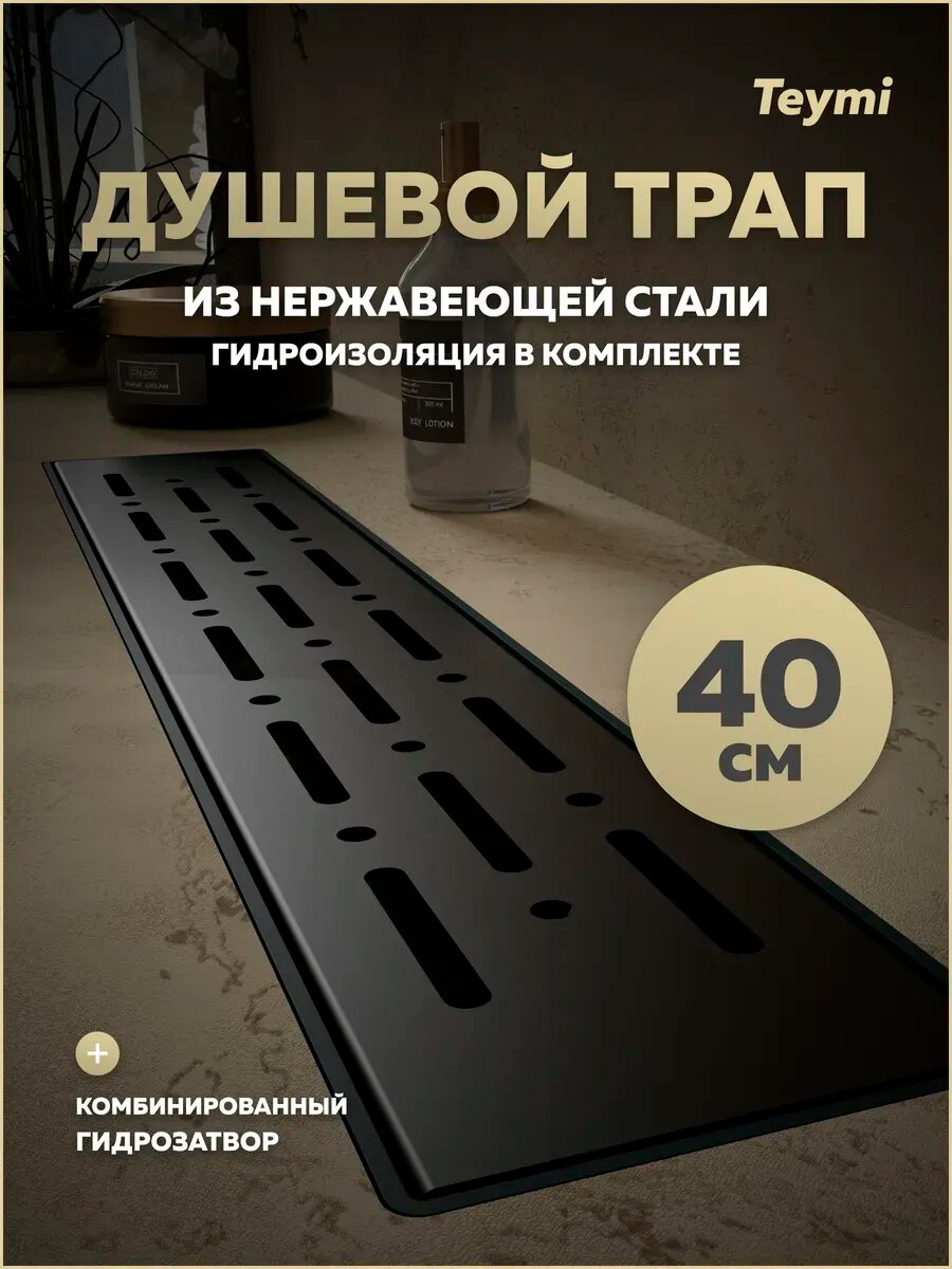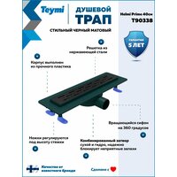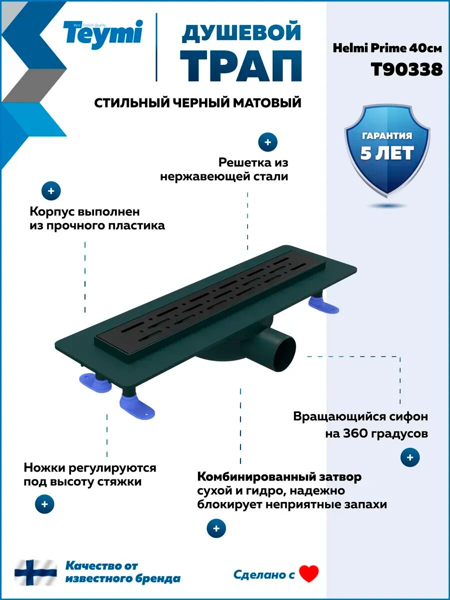 Купить Трап для душа с комбинированным гидрозатвором Teymi Helmi Prime черный 40 см решетка нержавеющая сталь T90338 с доставкой по всей России.