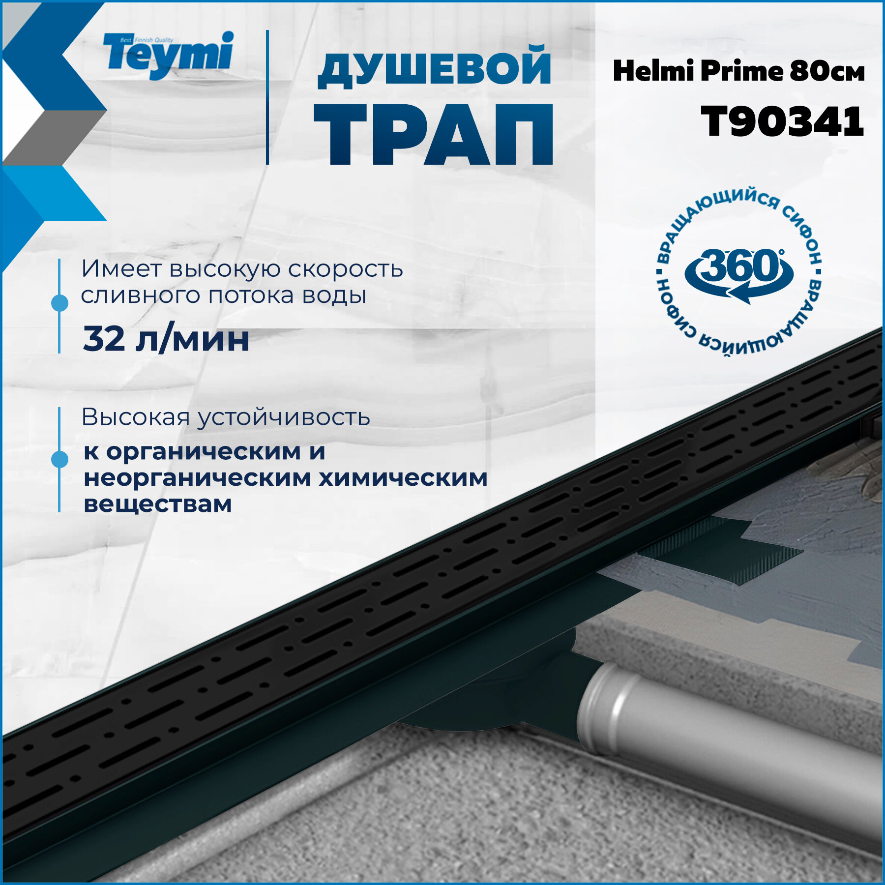 Трап для душа с комбинированным гидрозатвором Teymi Helmi Prime черный 80 см решетка нержавеющая сталь T90341: сравнение цен, характеристики, фото, актуальное наличие и цены.