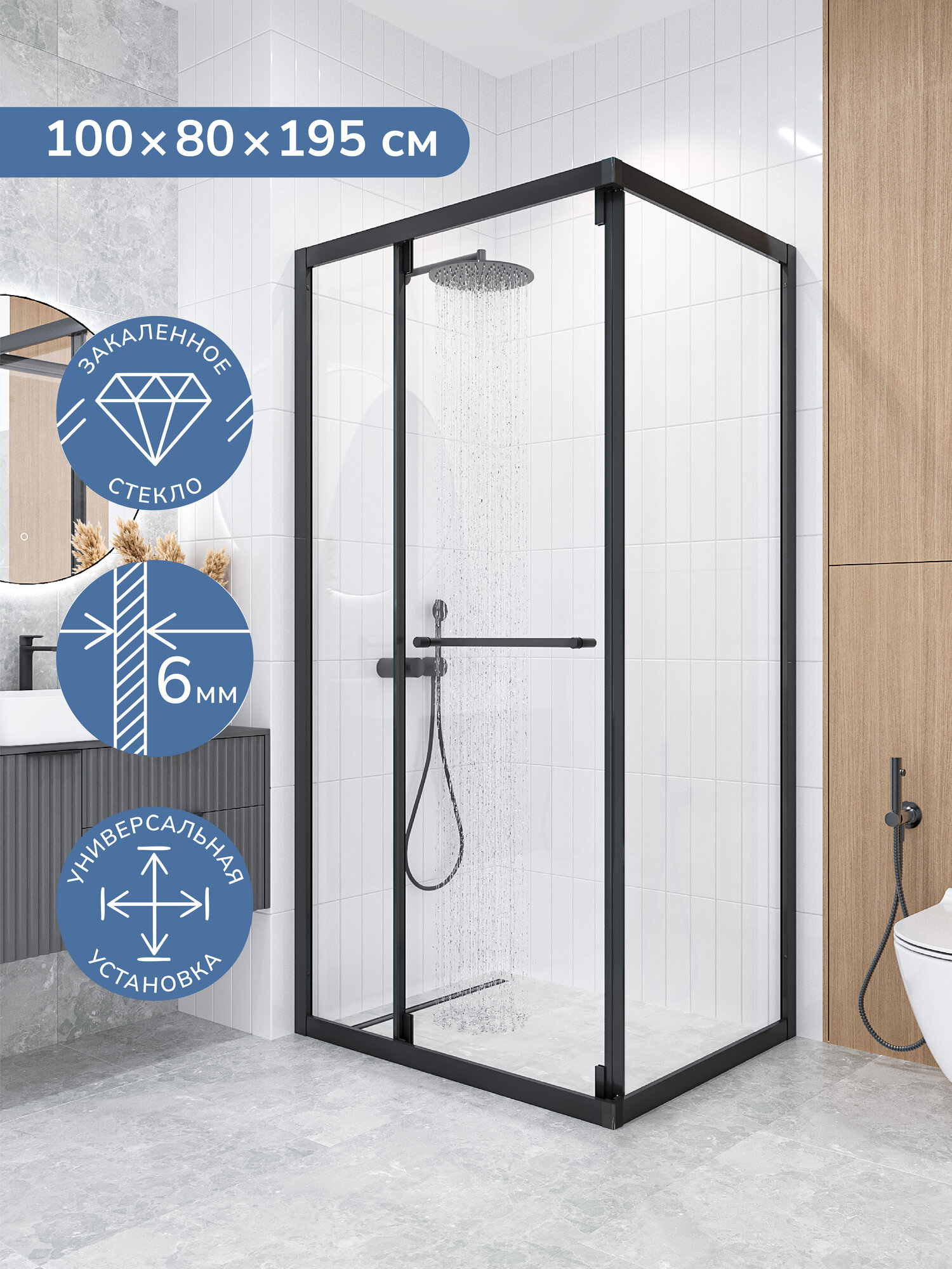 Душевой угол 100х80х195 см. сдвижная дверь Ulitka Joy стекло прозрачное, профиль черный: сравнение цен, характеристики, фото, актуальное наличие и цены.