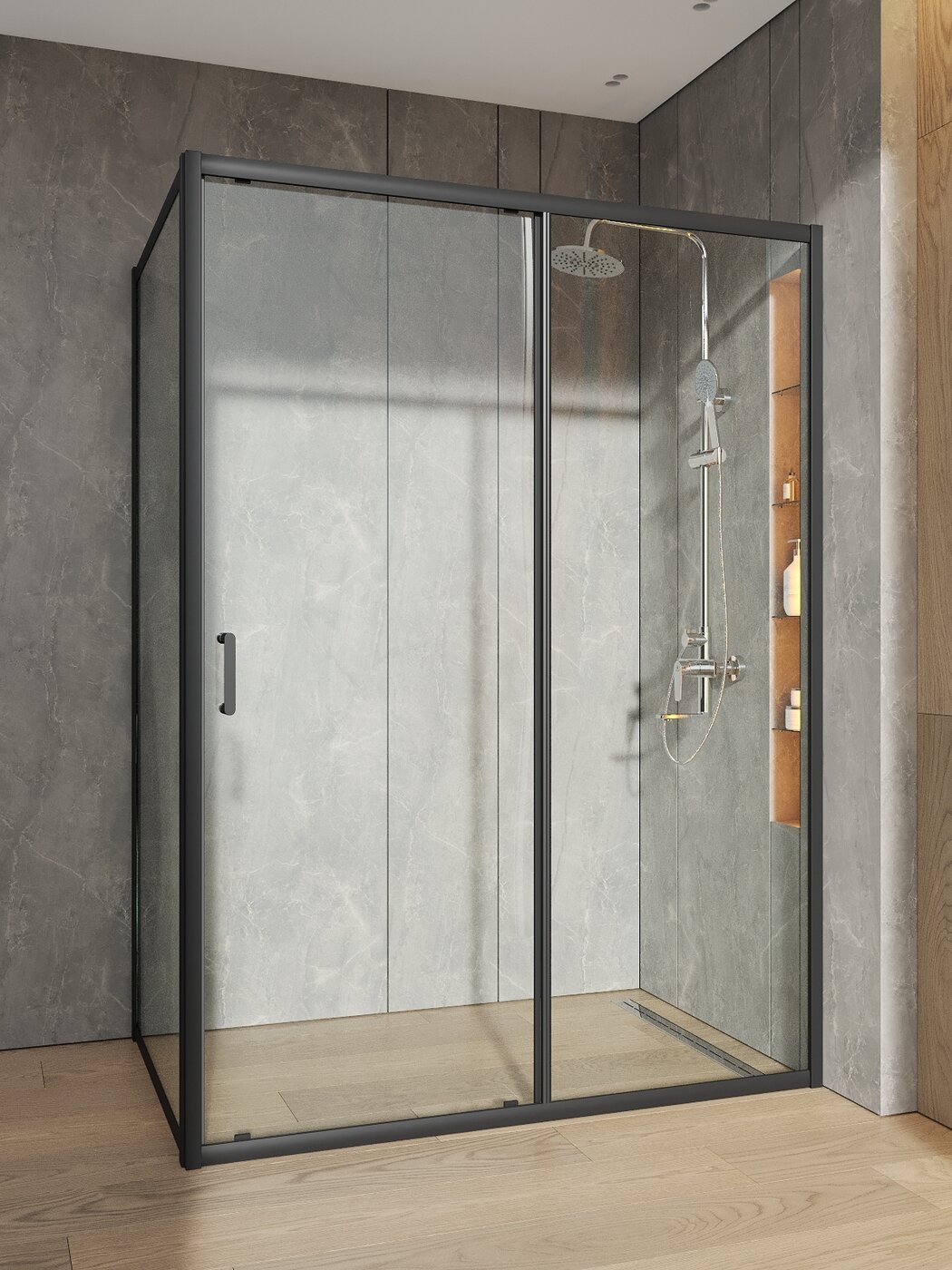 Душевой уголок с раздвижной дверкой поможет организовать душевую зону в нише ванной комнаты, монтаж напольный без поддона. Модель сочетает в себе современный минималистичный дизайн с удобством и функциональностью - универсальная конструкция, возможен право- и левосторонний монтаж. Прозрачное закаленное 6-миллиметровое стекло гармонично дополняет двойной алюминиевый профиль в цвете черный матовый. Боковая стенка - стекло толщиной 5 мм. Благодаря двойным роликам обеспечивается плавное движение створки. Габариты 140х88,5х190 см с возможностью регулировки ширины и глубины. Ширина входа - 60 см.