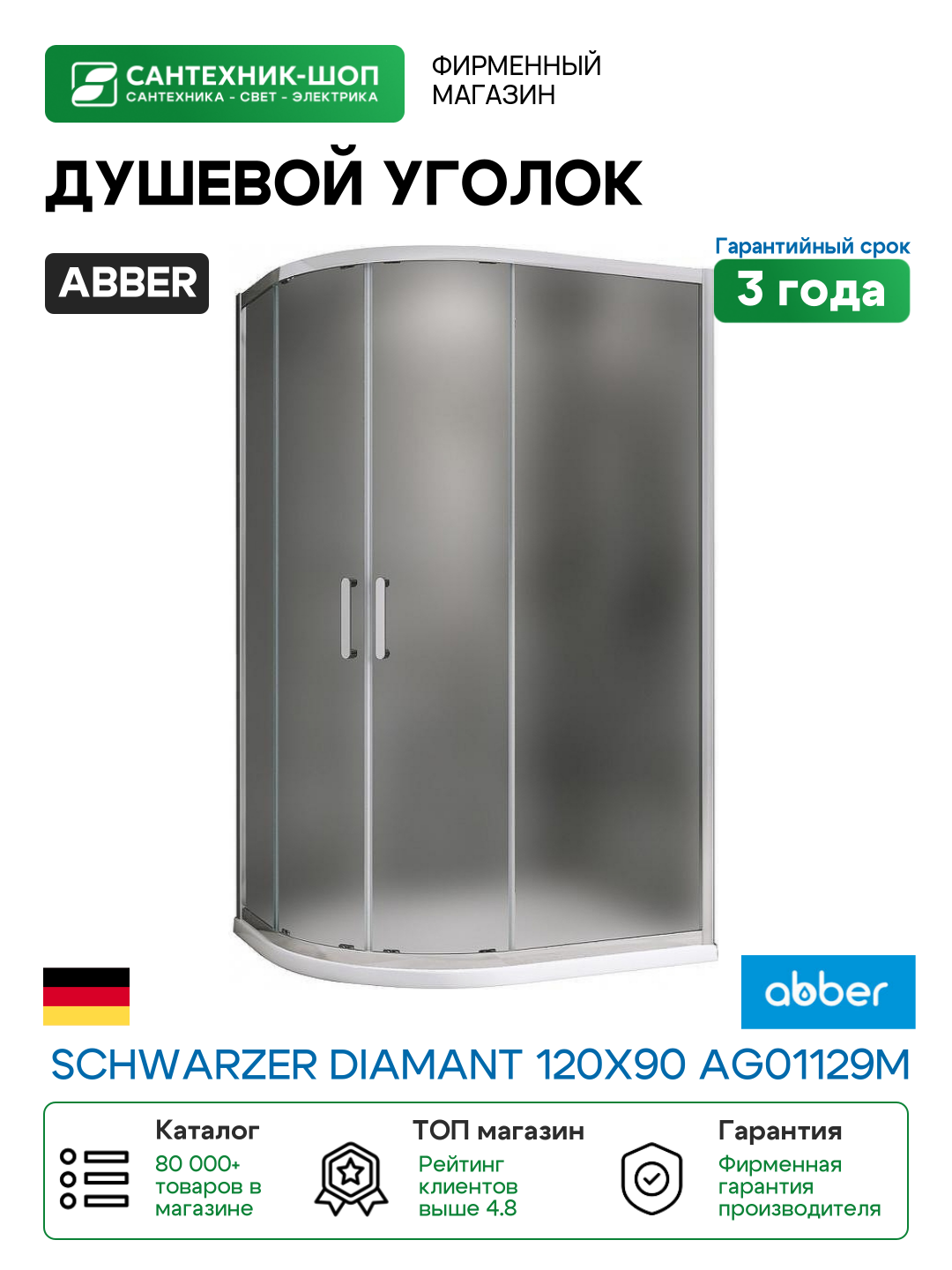 Душевой уголок Abber Schwarzer Diamant 120×90 AG01129M профиль Хром стекло матовое: сравнение цен, характеристики, фото, актуальное наличие и цены.