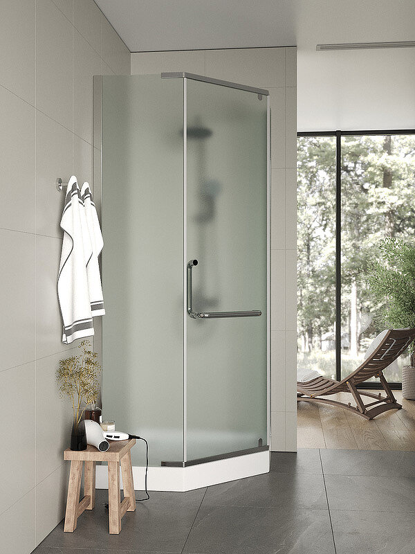 Душевой уголок Agger 90x90 A03-090MCR в форме призмы, с поддоном, с распашной дверью.