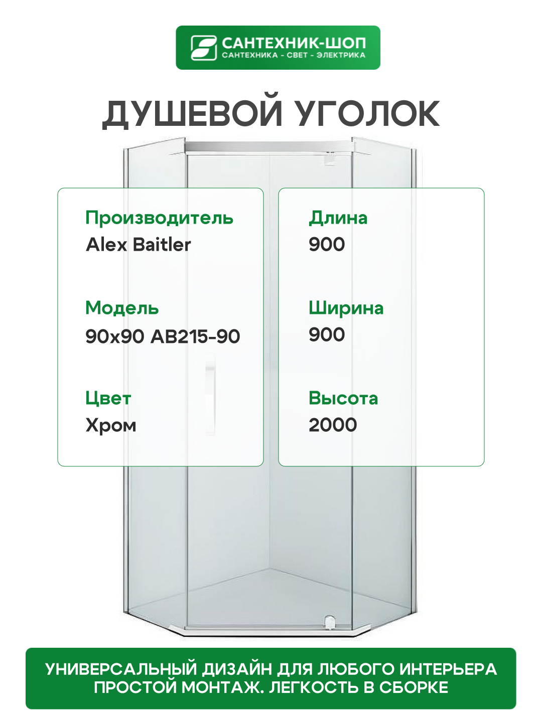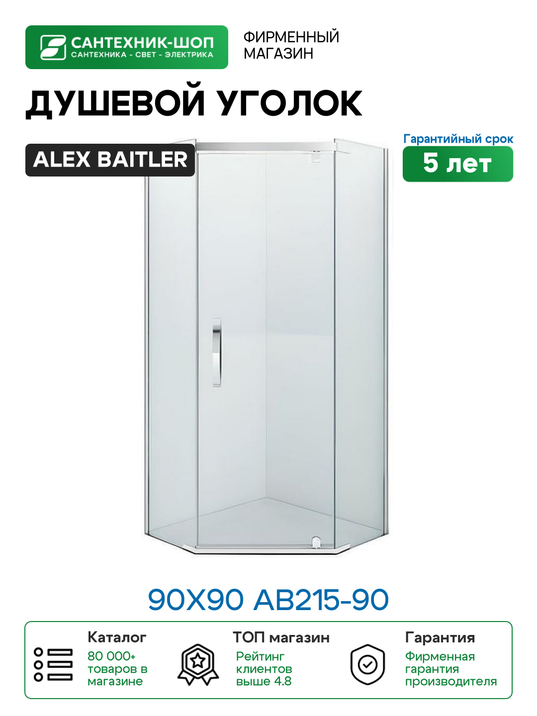 Душевой уголок Alex Baitler 90×90 AB215-90 профиль Хром стекло прозрачное: сравнение цен, характеристики, фото, актуальное наличие и цены.