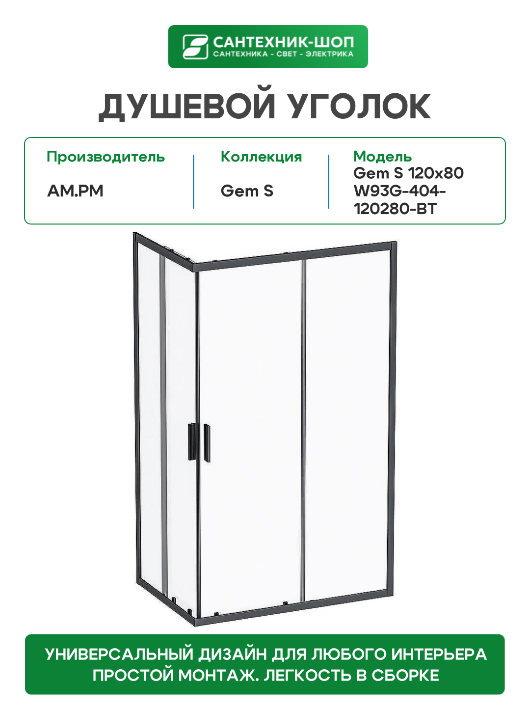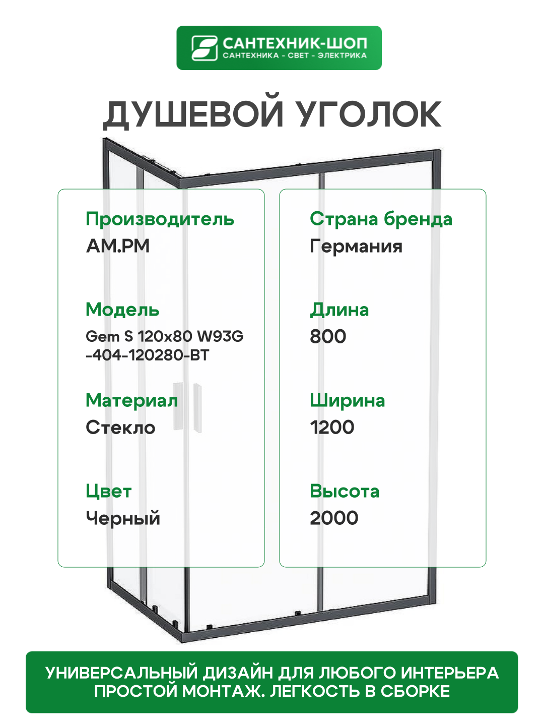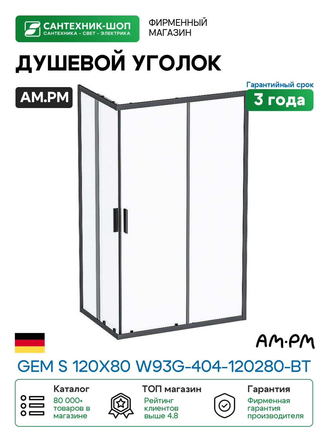 Купить Душевой уголок AM.PM Gem S 120х80 W93G-404-120280-BT профиль Черный матовый стекло прозрачное с доставкой по всей России. Душевой уголок AM.PM Gem S 120х80 W93G-404-120280-BT профиль Черный матовый стекло прозрачное: сравнение цен, характеристики, фото, актуальное наличие и цены.