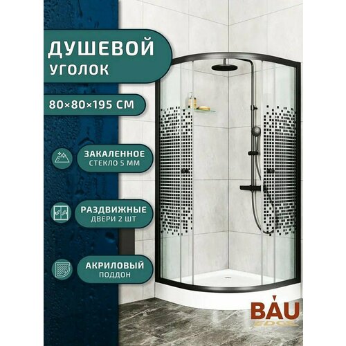 Купить Душевой уголок BAU Dream с поддоном 80×80х195, прозрачное закаленное стекло с черной мозаикой 5 мм, черный матовый профиль с доставкой по всей России. Душевой уголок BAU Dream с поддоном 80×80х195, прозрачное закаленное стекло с черной мозаикой 5 мм, черный матовый профиль: сравнение цен, характеристики, фото, актуальное наличие и цены.