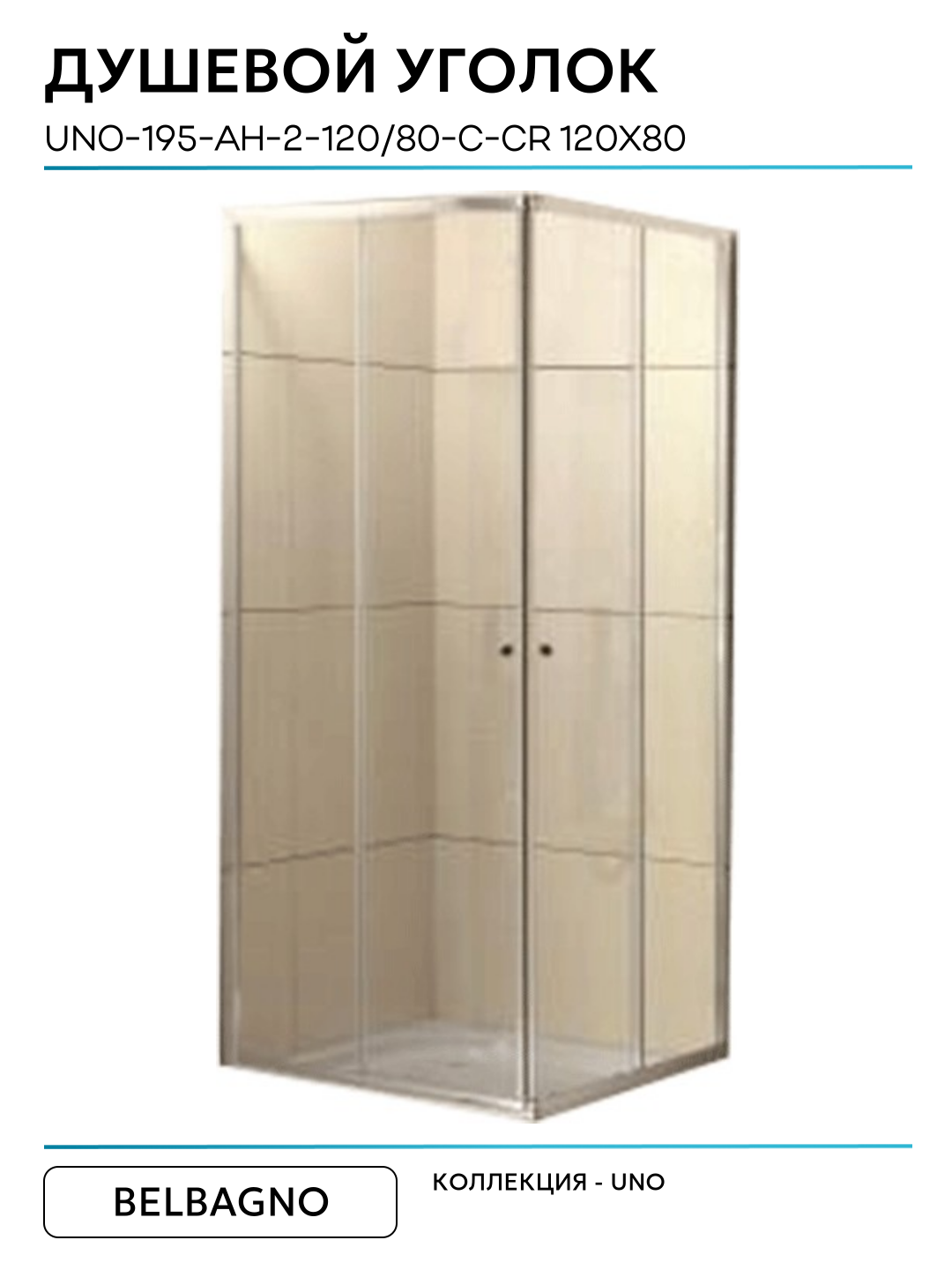 Душевой уголок BelBagno UNO-195-AH-2-120/80-C-Cr 120×80 профиль Хром стекло прозрачное: сравнение цен, характеристики, фото, актуальное наличие и цены.