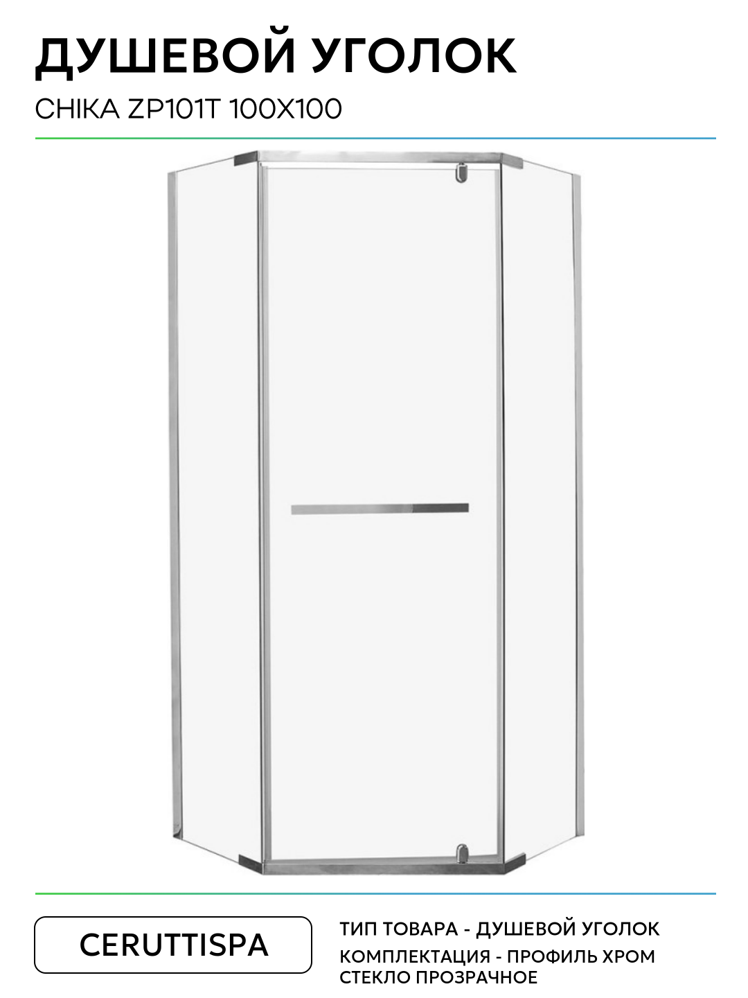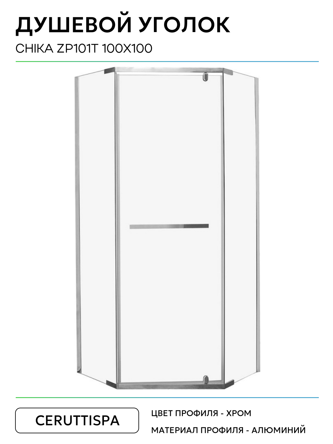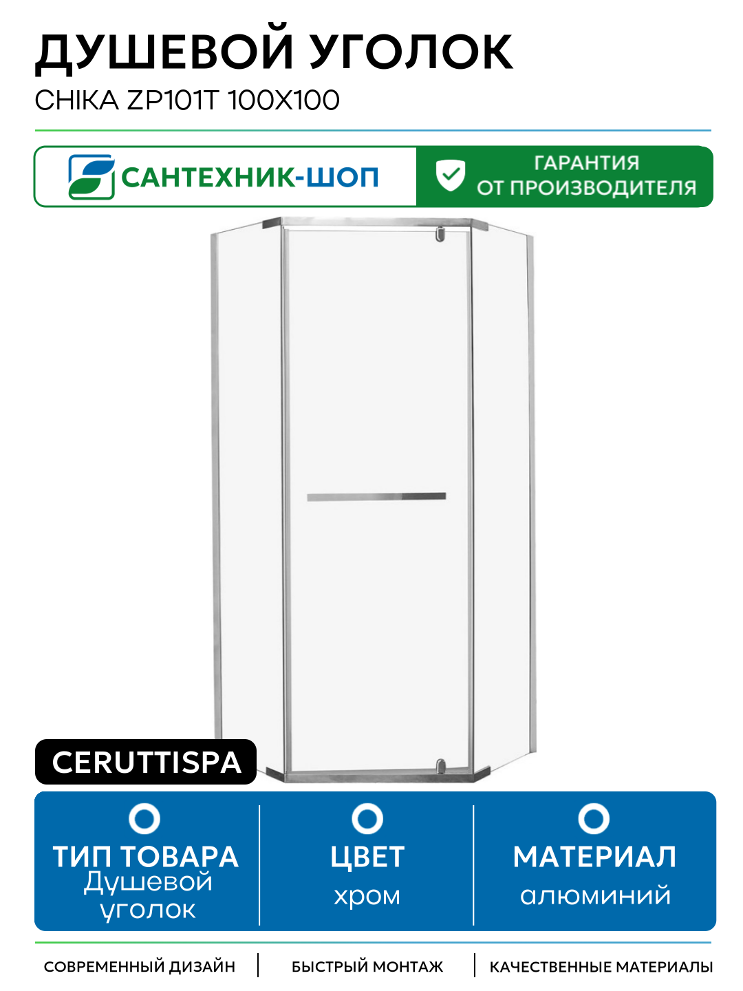 Душевой уголок Ceruttispa Chika ZP101T 100×100 профиль Хром стекло прозрачное алюминий хром Италия: сравнение цен, характеристики, фото, актуальное наличие и цены.