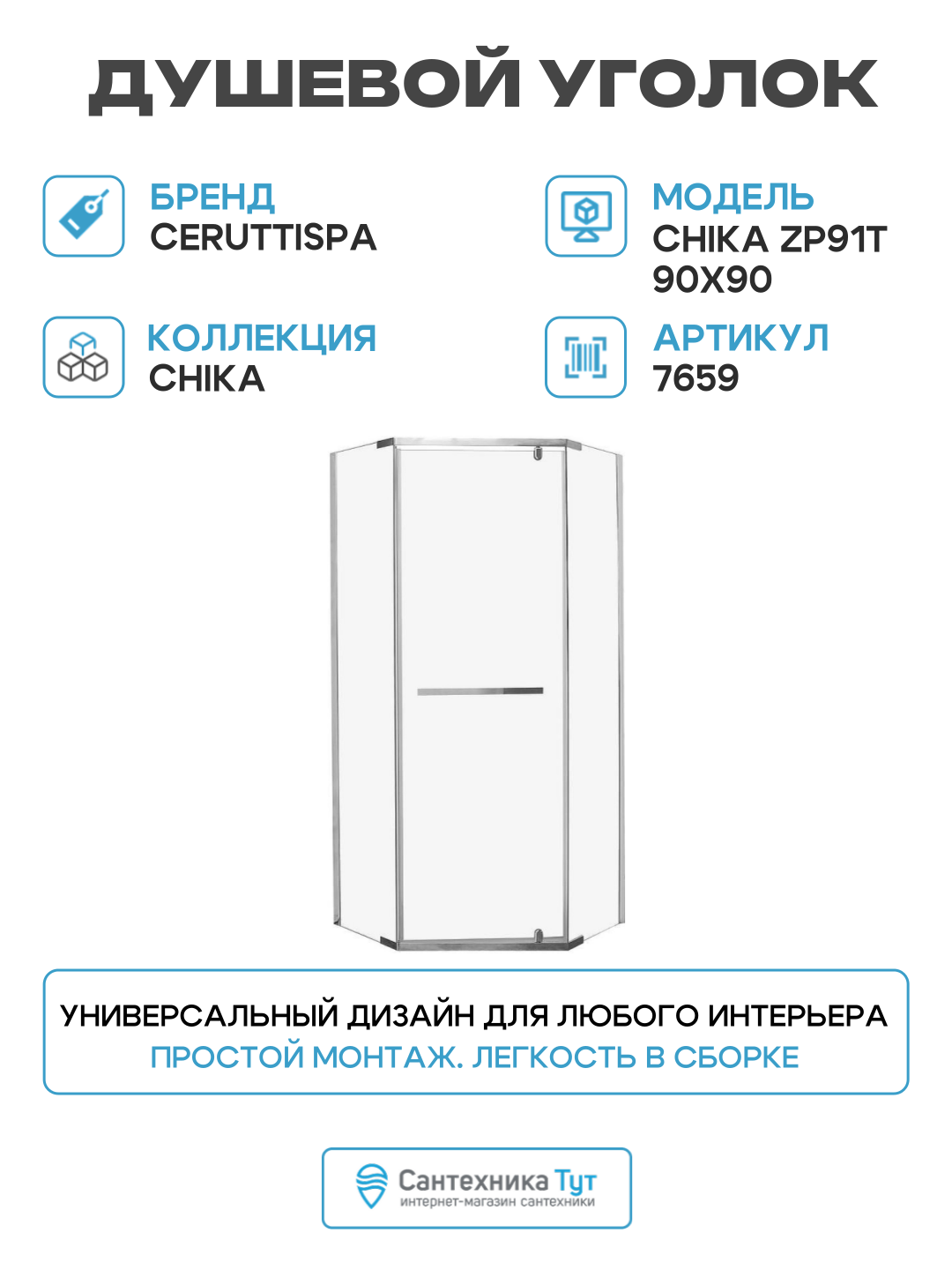 Душевой уголок Ceruttispa Chika ZP91T 90×90 профиль Хром стекло прозрачное хром: сравнение цен, характеристики, фото, актуальное наличие и цены.