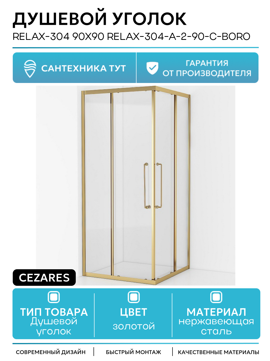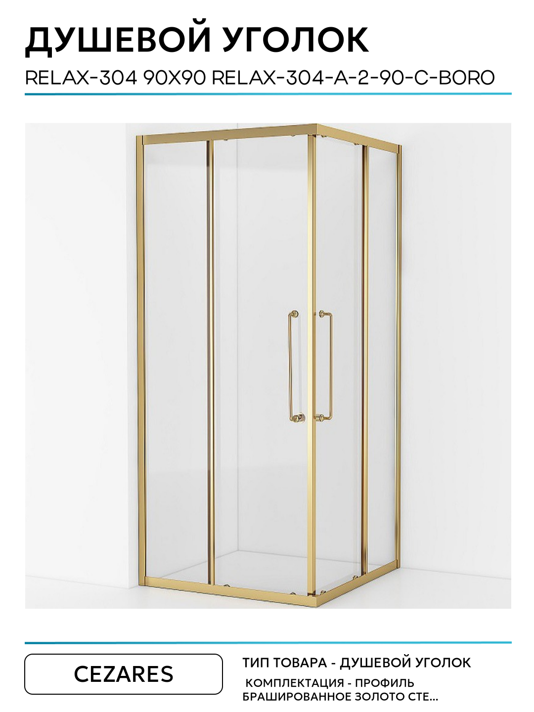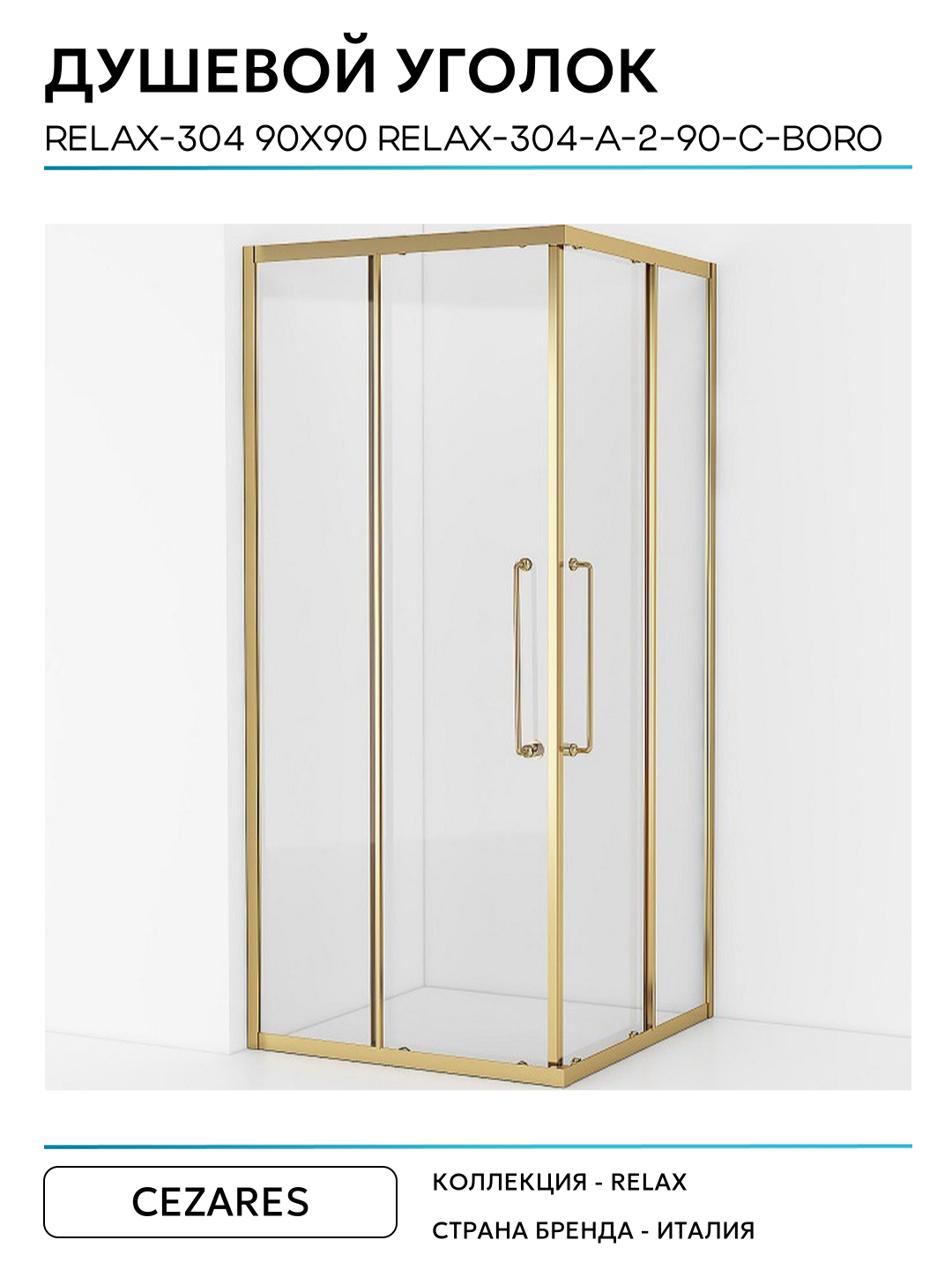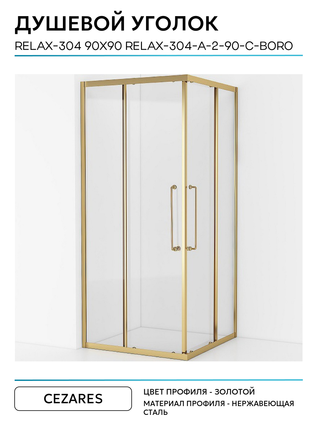Душевой уголок Cezares Relax-304 90×90 RELAX-304-A-2-90-C-BORO профиль Брашированное золото стекло прозрачное: сравнение цен, характеристики, фото, актуальное наличие и цены.