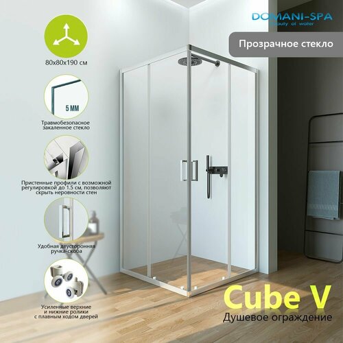 Купить Душевой уголок Domani-Spa Cube 80х80, без поддона, профиль хром, ударопрочное закаленное стекло 5 мм с доставкой по всей России. Душевой уголок Domani-Spa Cube 80х80, без поддона, профиль хром, ударопрочное закаленное стекло 5 мм: сравнение цен, характеристики, фото, актуальное наличие и цены.