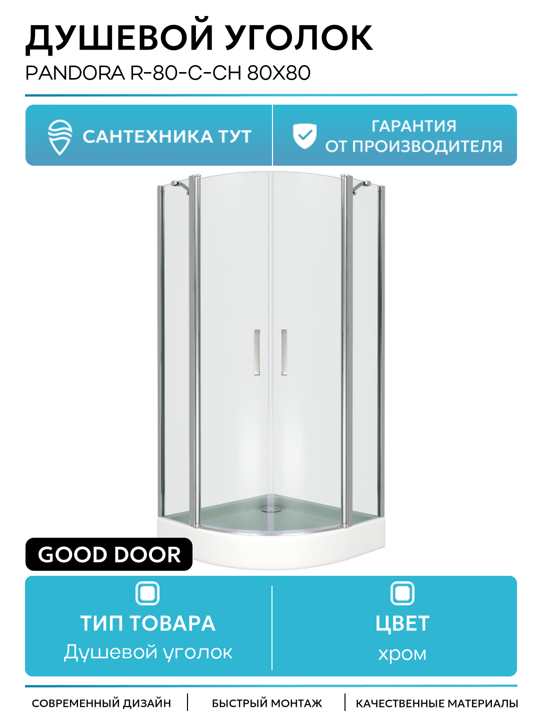 Душевой уголок Good Door Pandora R-80-C-CH 80х80 профиль Хром стекло прозрачное хром: сравнение цен, характеристики, фото, актуальное наличие и цены.