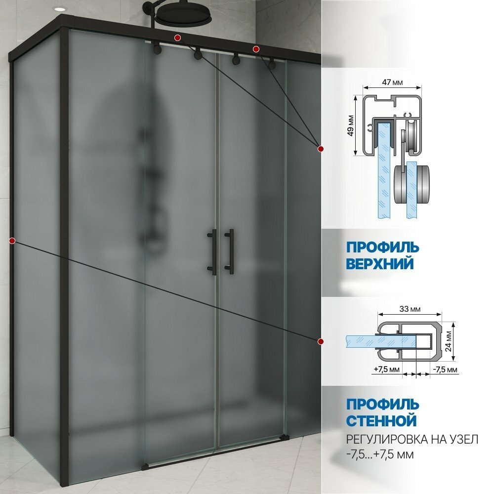 Душевой уголок GWMPSLRC865 120×125 см, цвет фурнитуры черный матовый, стекло графитовое матовое закаленное 8/6 мм: сравнение цен, характеристики, фото, актуальное наличие и цены.