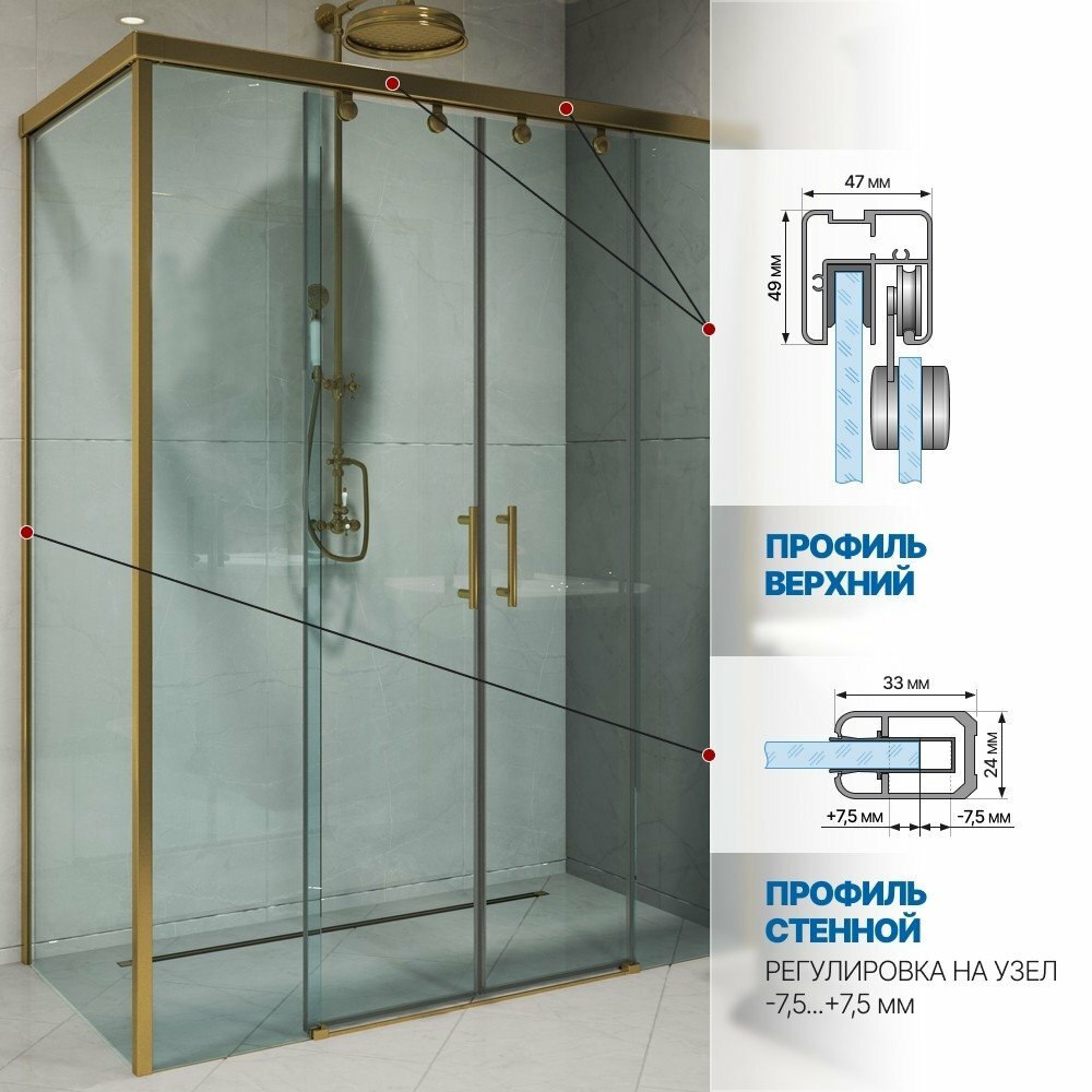 Душевой уголок GWMPSLRC865 75×125 см, цвет фурнитуры бронзовый, стекло бесцветное закаленное 8/6 мм: сравнение цен, характеристики, фото, актуальное наличие и цены.