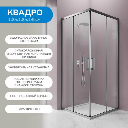 Купить Душевой уголок 100х100 см. Квадро стекло прозрачное, профиль цвета графит с доставкой по всей России. Душевой уголок 100х100 см. Квадро стекло прозрачное, профиль цвета графит: сравнение цен, характеристики, фото, актуальное наличие и цены.