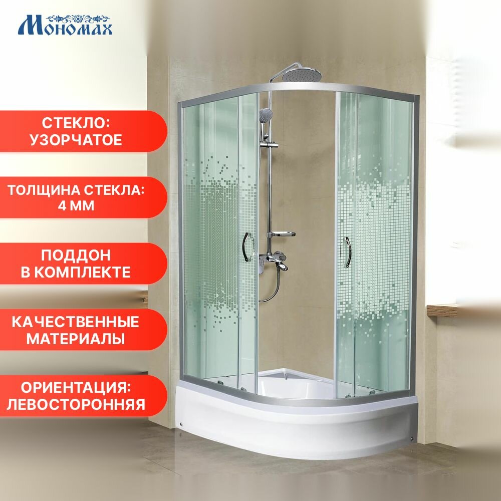 Душевой уголок мономах ДУ 100/70/180 МЗ L с поддоном стекло узорчатое, профиль серебристый, левосторонняя: сравнение цен, характеристики, фото, актуальное наличие и цены.