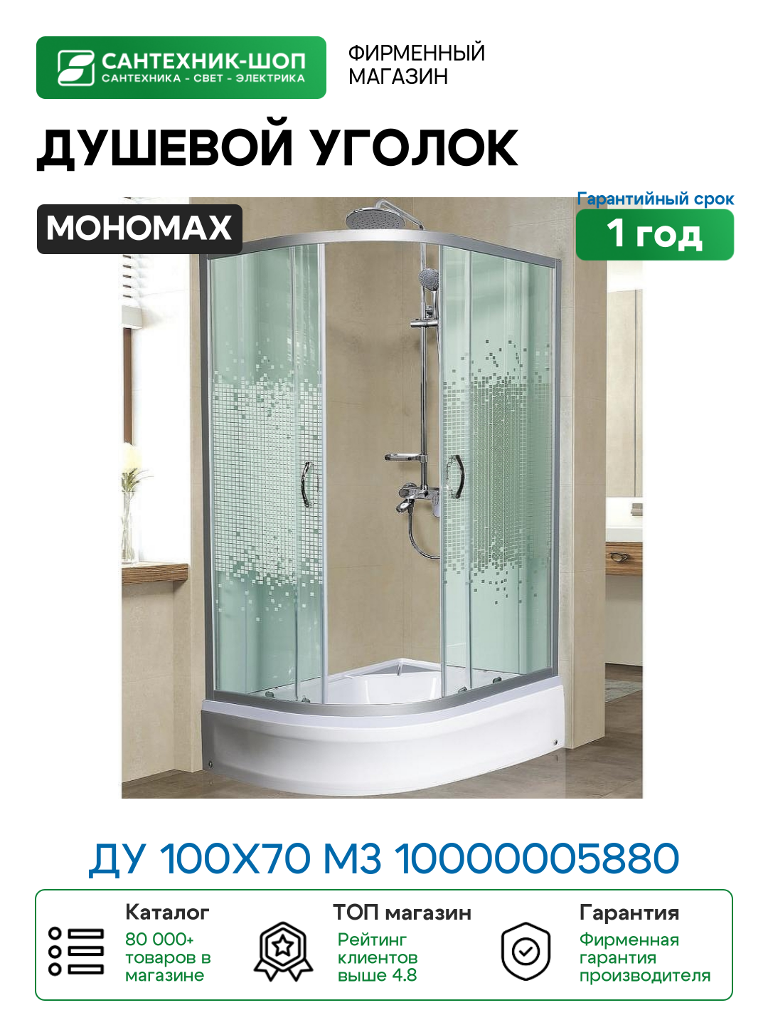 Душевой уголок Мономах ДУ 100×70 МЗ 10000005880 профиль Хром матовый стекло прозрачное с рисунком: сравнение цен, характеристики, фото, актуальное наличие и цены.