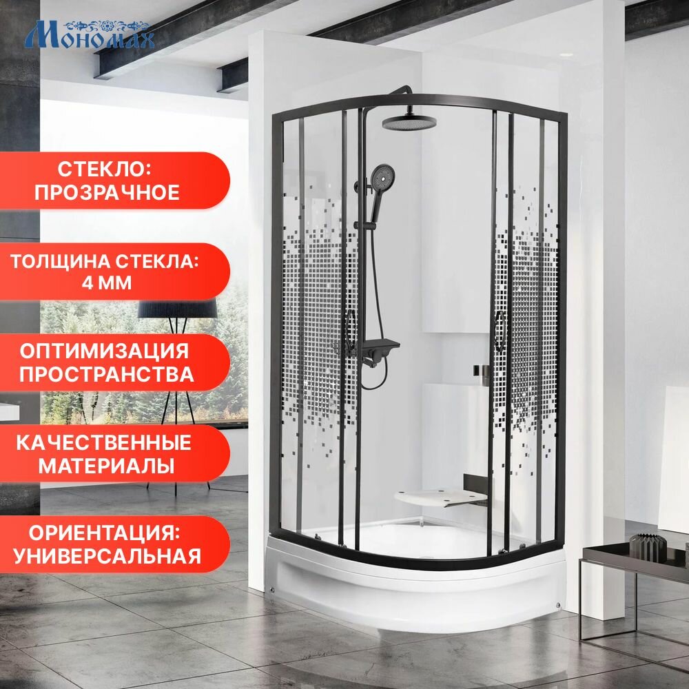 Купить Душевой уголок мономах ДУ 80/180 МЗ BL без поддона стекло прозрачное, стекло узорчатое, профиль черный, универсальная с доставкой по всей России.