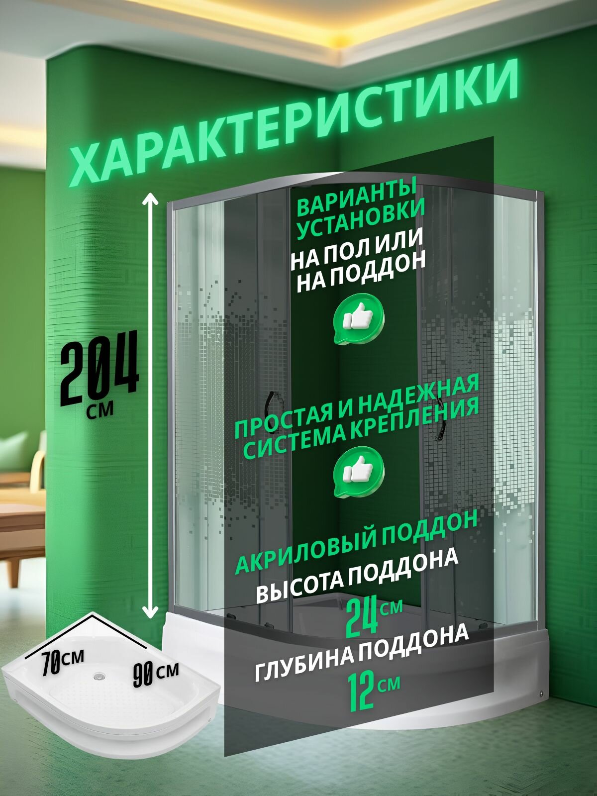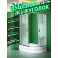 Душевой уголок Мономах-ДУ 90/70/180 МЗ L, асимметричный левый, с поддоном, 90 70 204 см, средний поддон 24 см, стекло с рисунком, хром профиль: сравнение цен, характеристики, фото, актуальное наличие и цены.