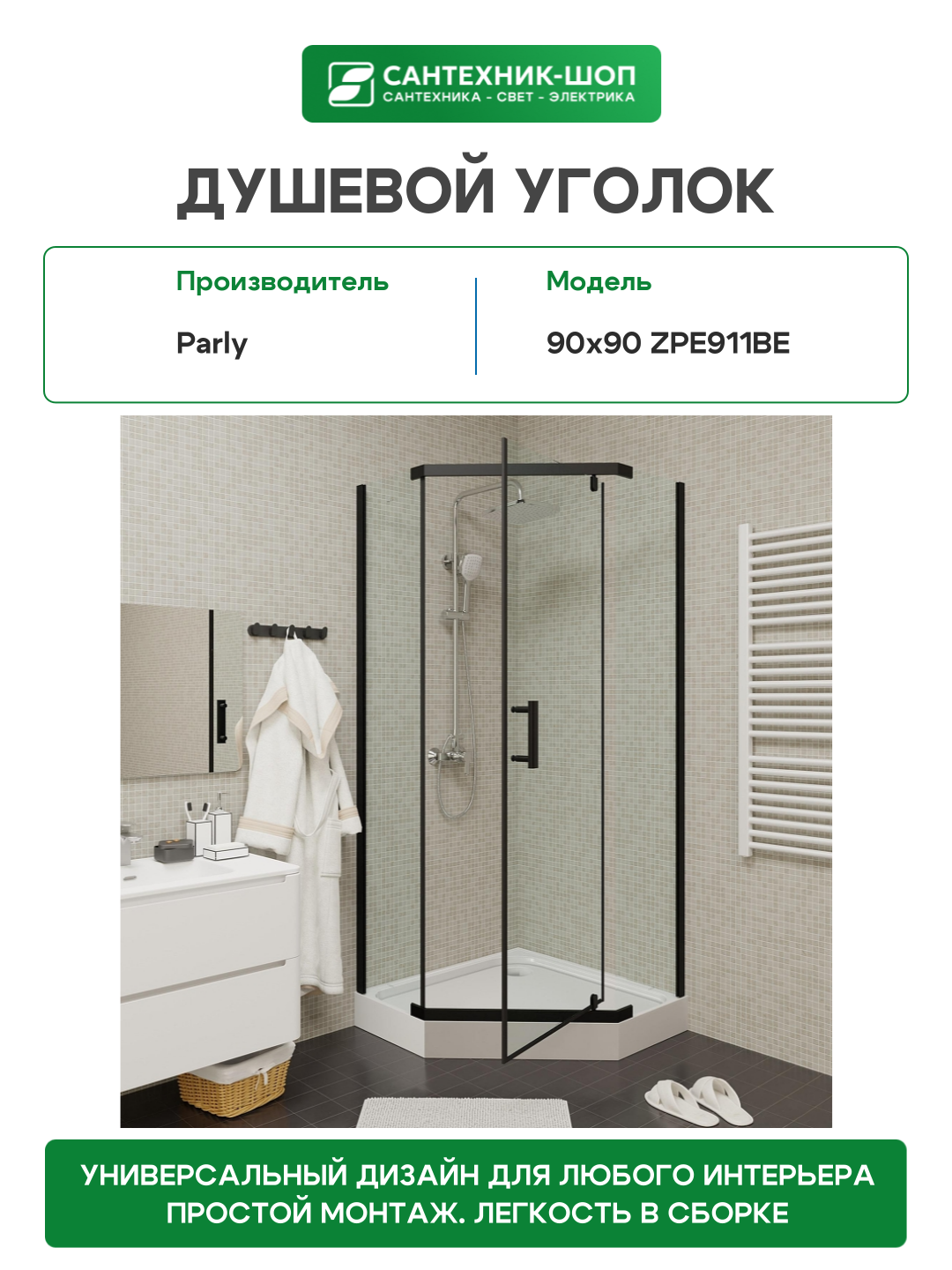 Душевой уголок Parly 90×90 ZPE911BE профиль Черный стекло прозрачное: сравнение цен, характеристики, фото, актуальное наличие и цены.