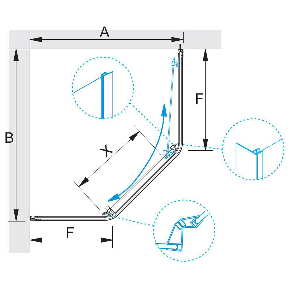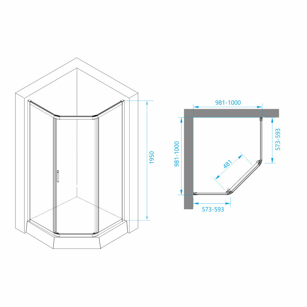 Душевой уголок имеет форму трапеции, что позволяет оптимально использовать пространство в ванной комнате. Высота уголка 1950 мм позволяет быть уверенным в защите ванной комнаты от всевозможных брызг воды.