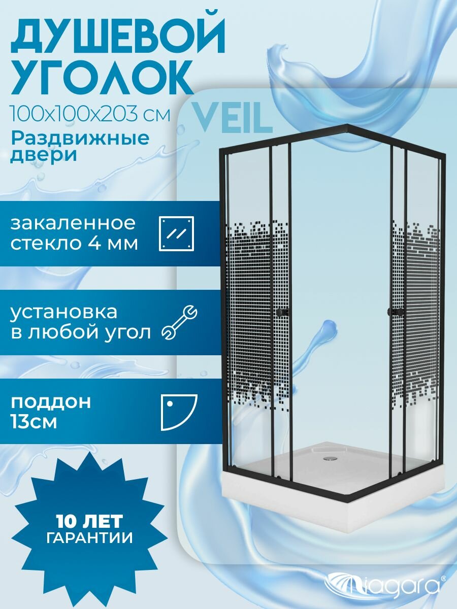 Душевой уголок с поддоном Niagara Veil (100х100х203) квадрат, раздвижные двери, мозаика, черный матовый профиль: сравнение цен, характеристики, фото, актуальное наличие и цены.