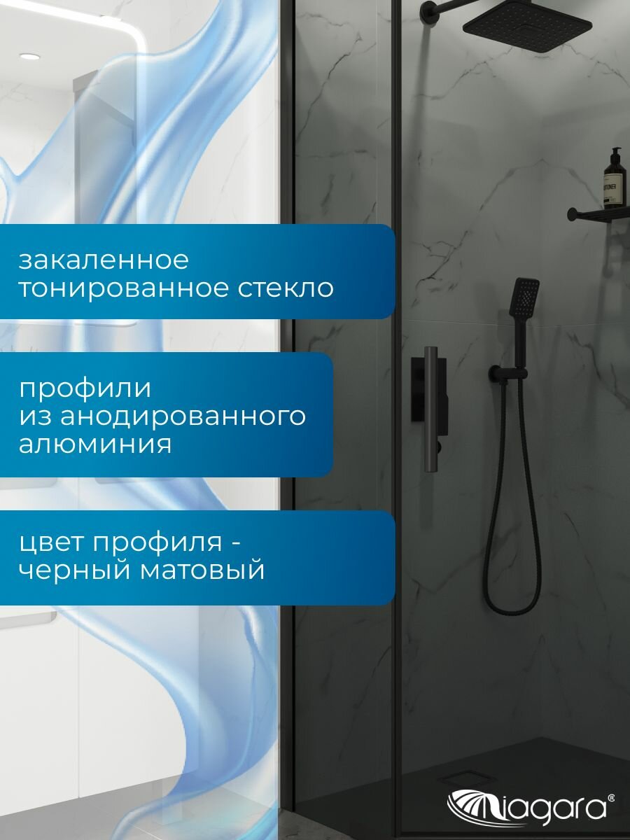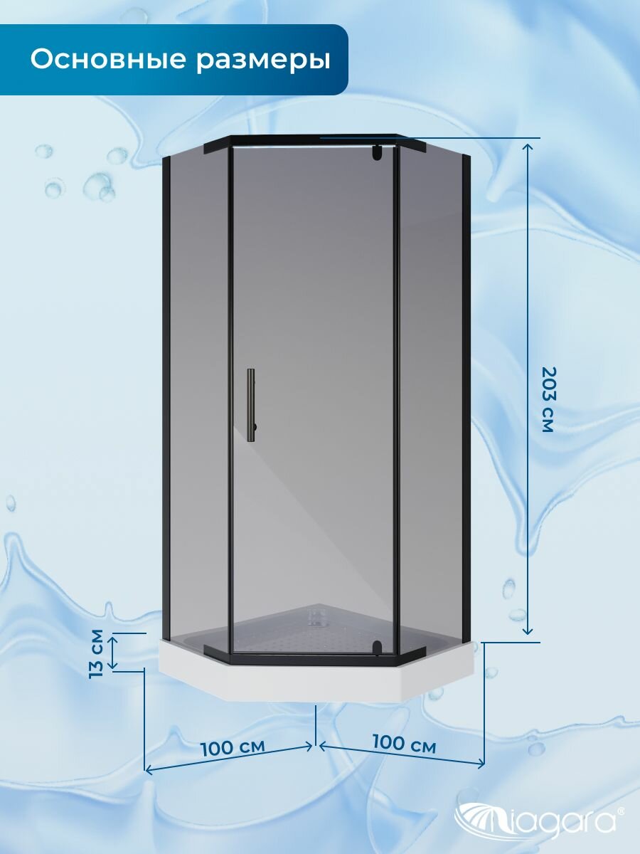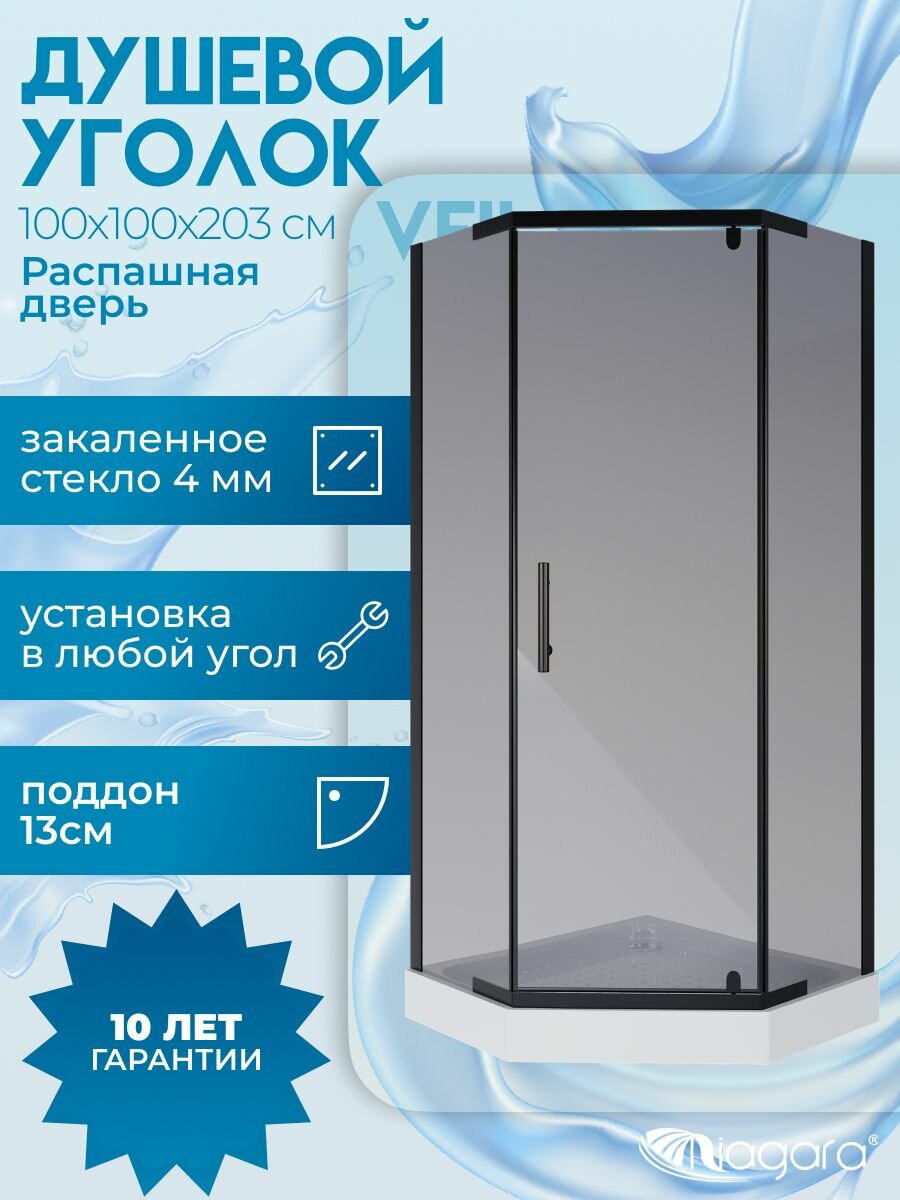 Душевой уголок с поддоном Niagara Veil (100х100х203) трапеция, распашная дверь, тонированное стекло, черный матовый профиль: сравнение цен, характеристики, фото, актуальное наличие и цены.