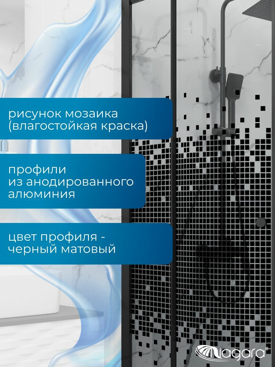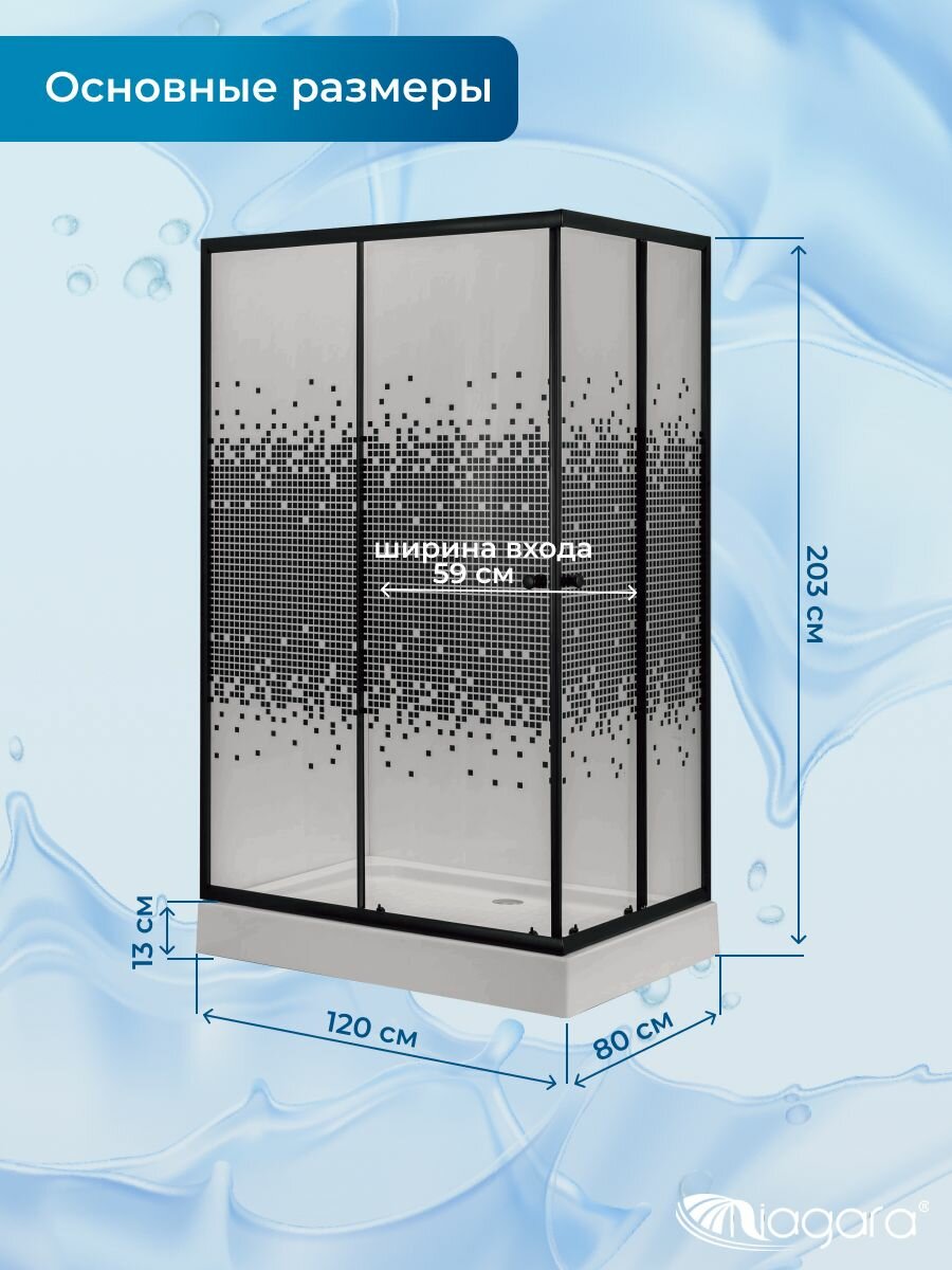 Душевой уголок с поддоном Niagara Veil (120х80х203) прямоугольник, раздвижные двери, мозаика, черный матовый профиль: сравнение цен, характеристики, фото, актуальное наличие и цены.