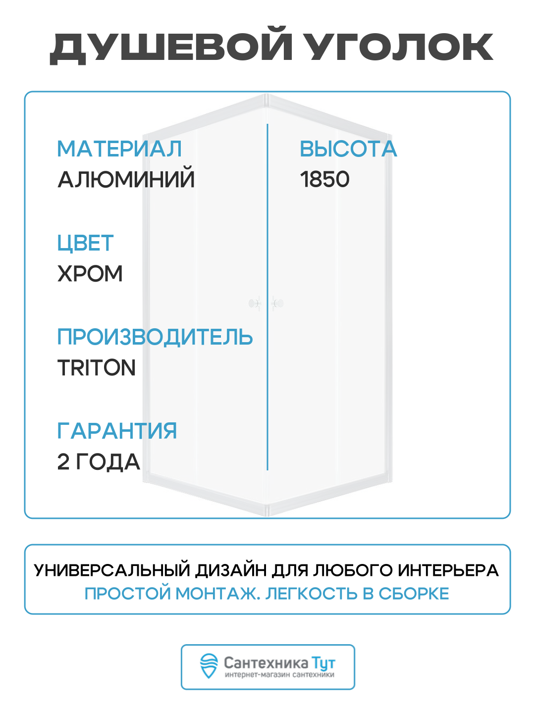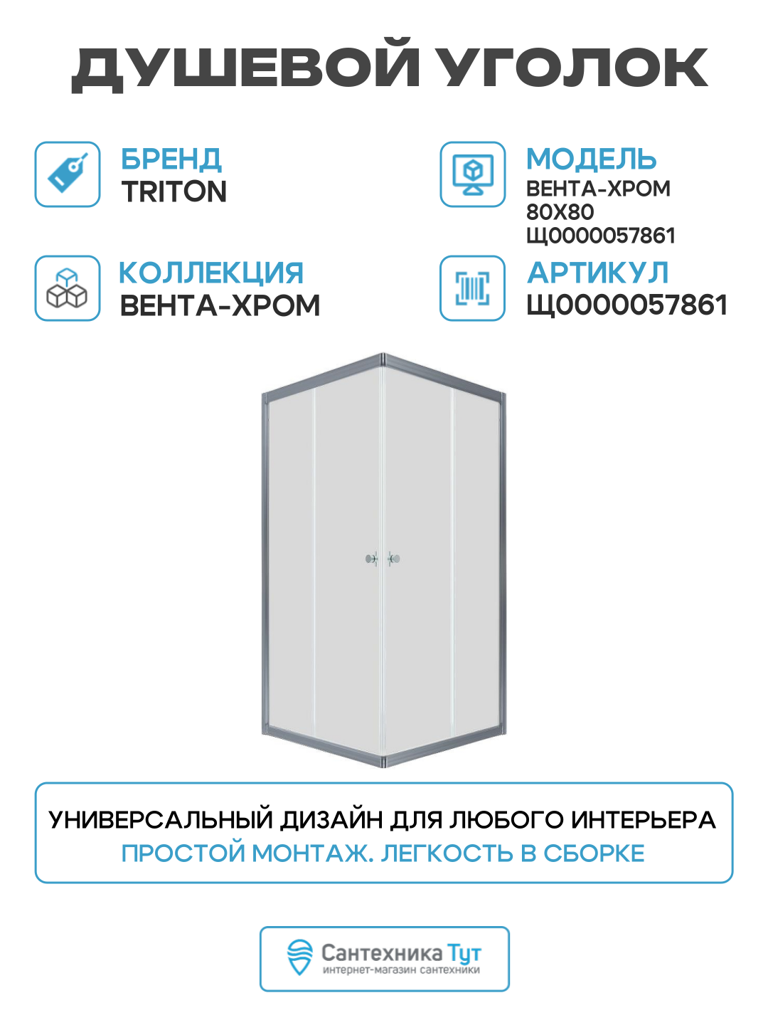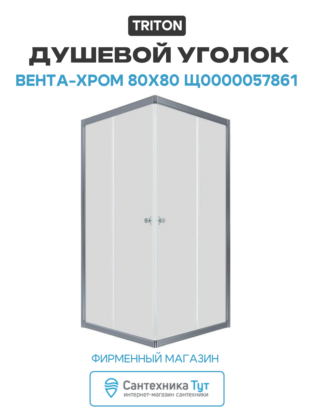 Душевой уголок Triton Вента-Хром 80х80 Щ0000057861 профиль Хром стекло прозрачное алюминий хром Россия: сравнение цен, характеристики, фото, актуальное наличие и цены.