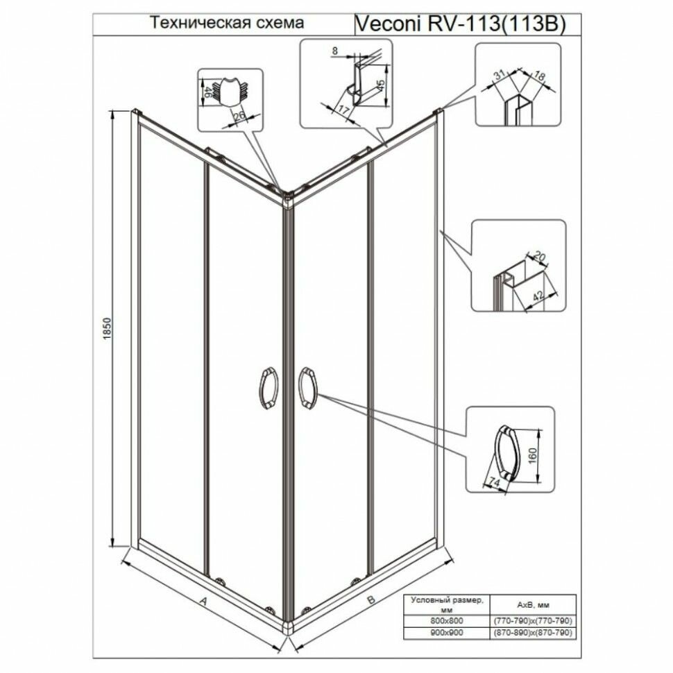 Душевой уголок Veconi Rovigo RV-113B, 90х90, стекло прозрачное, профиль черный матовый RV113B-90-01-C4: сравнение цен, характеристики, фото, актуальное наличие и цены.