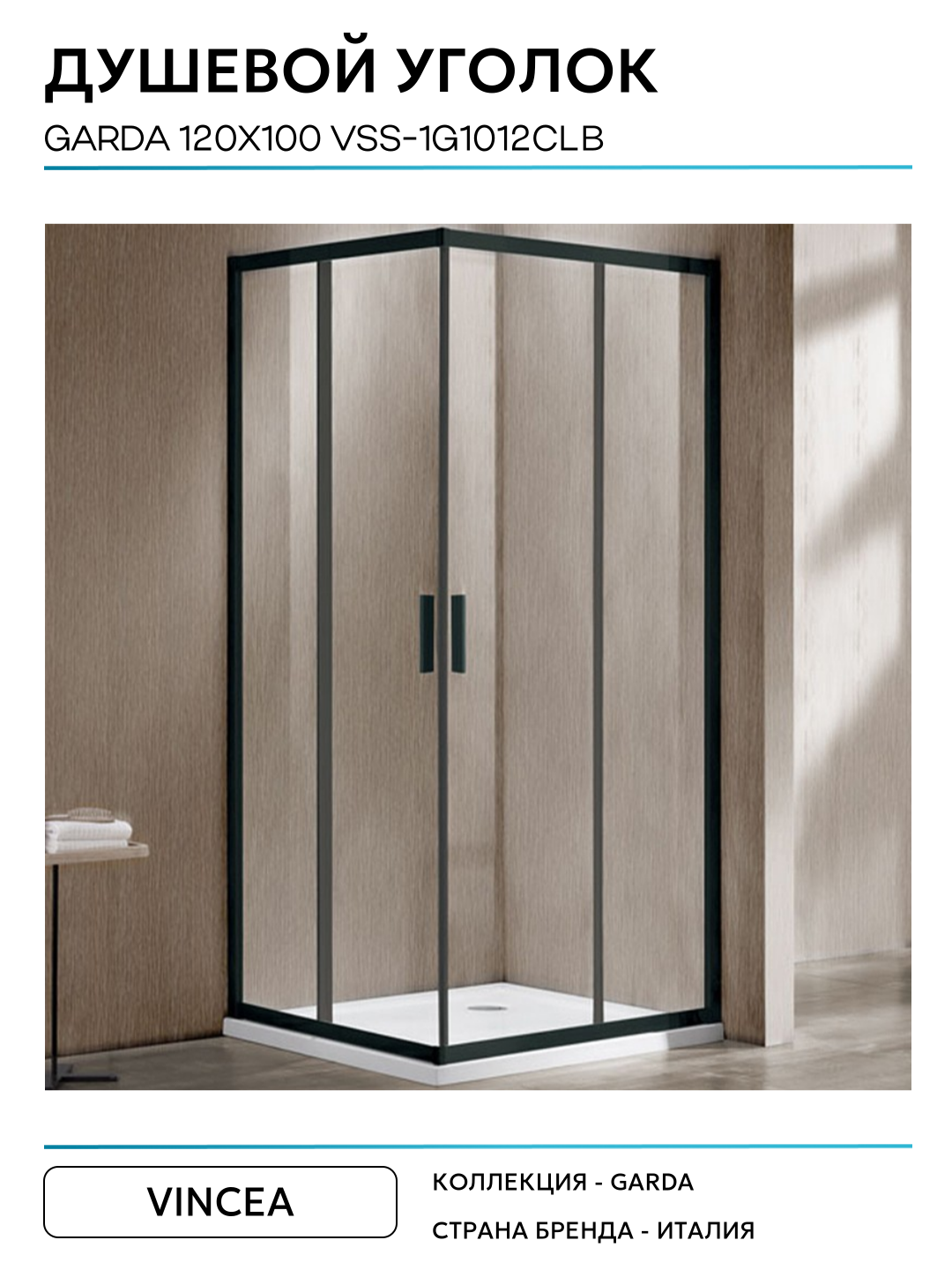 Купить Душевой уголок Vincea Garda 120×100 VSS-1G1012CLB профиль Черный стекло прозрачное алюминий черный Италия с доставкой по всей России.