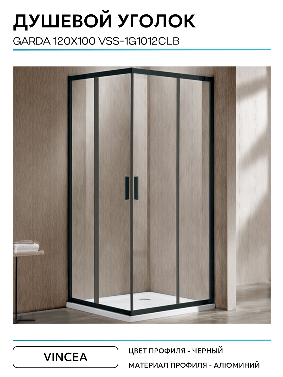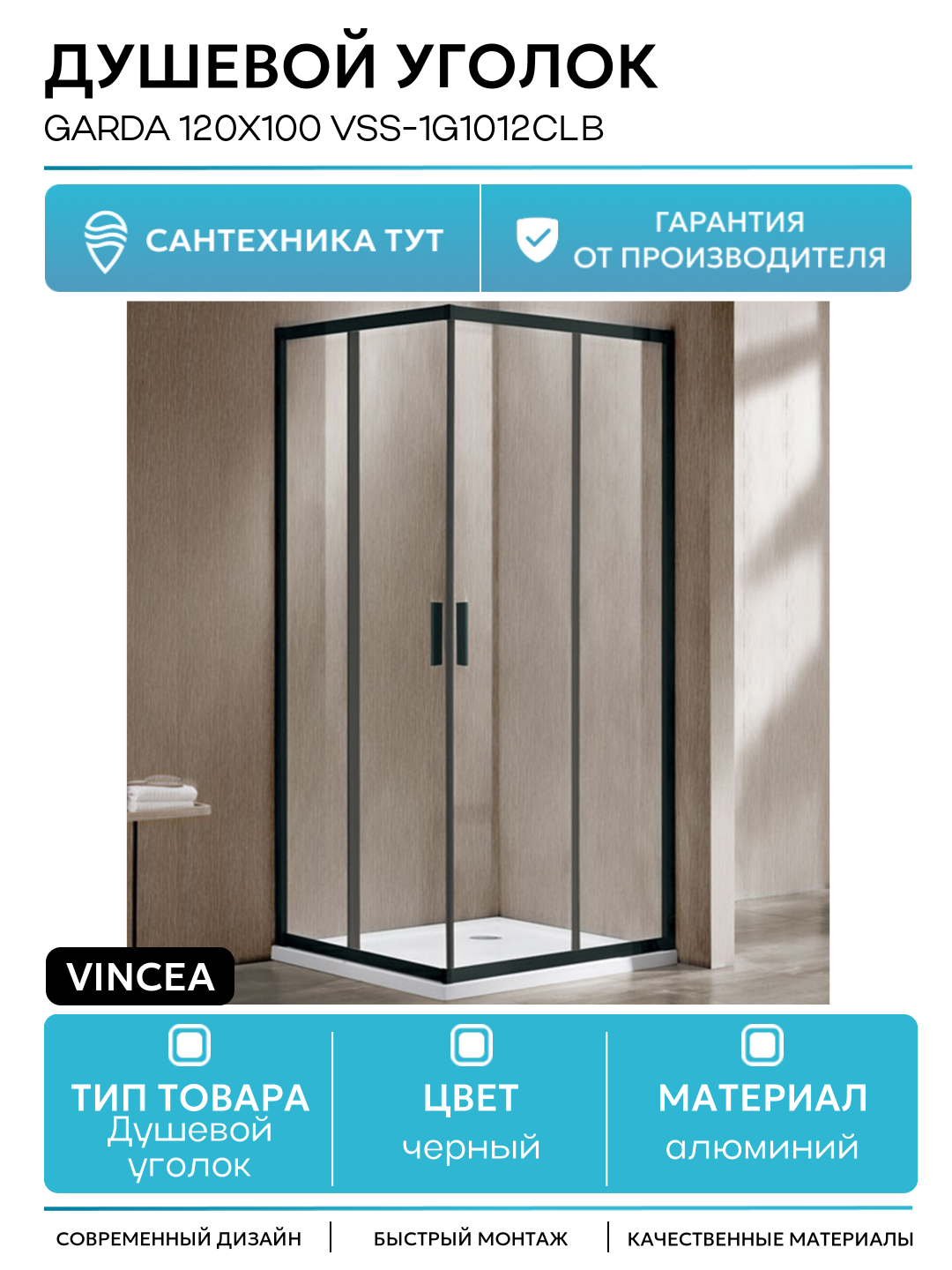 Душевой уголок Vincea Garda 120×100 VSS-1G1012CLB профиль Черный стекло прозрачное алюминий черный Италия: сравнение цен, характеристики, фото, актуальное наличие и цены.