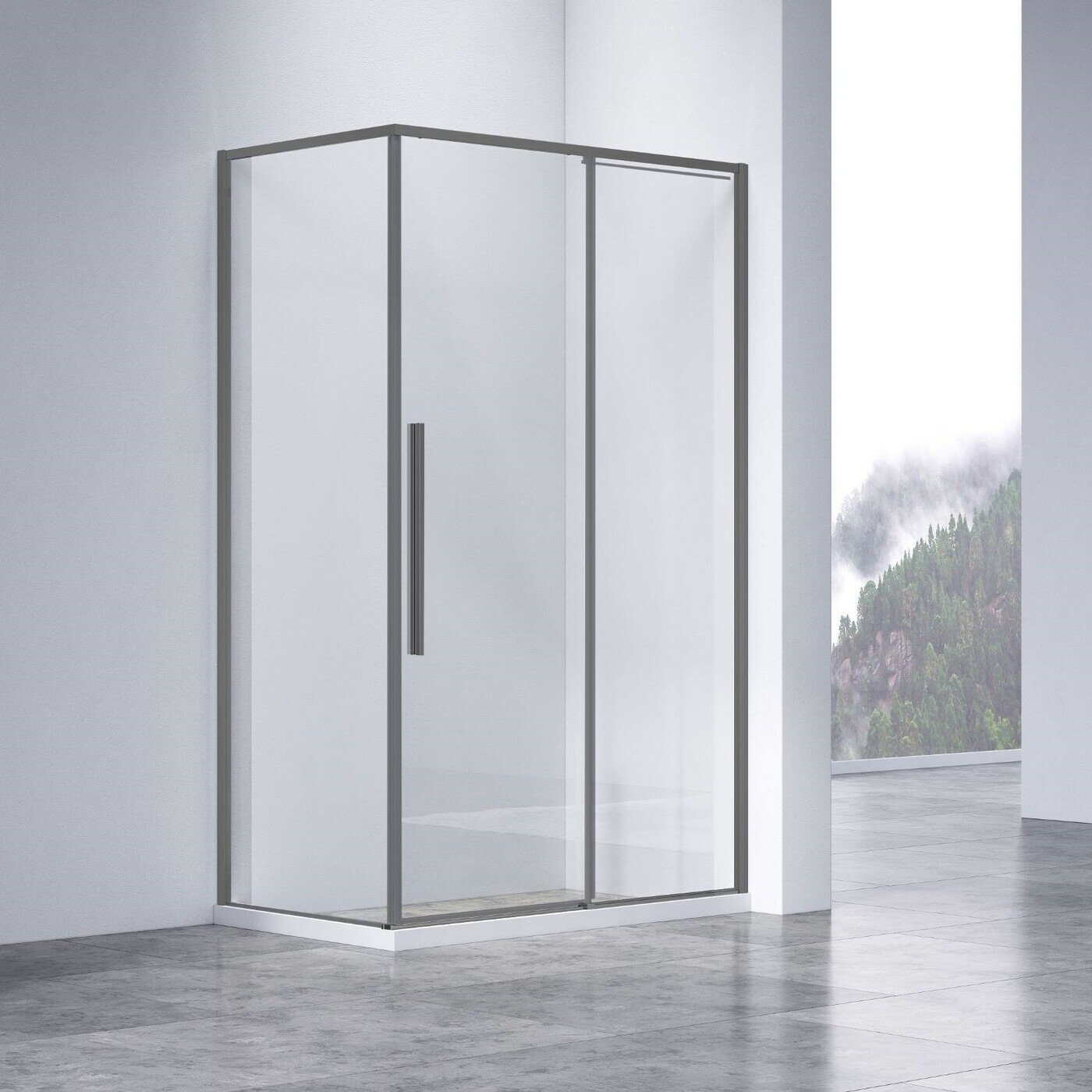 Душевой уголок Vincea Alpha VSR-3AL9011CLGM, 1100*900, вороненая сталь, стекло прозрачное