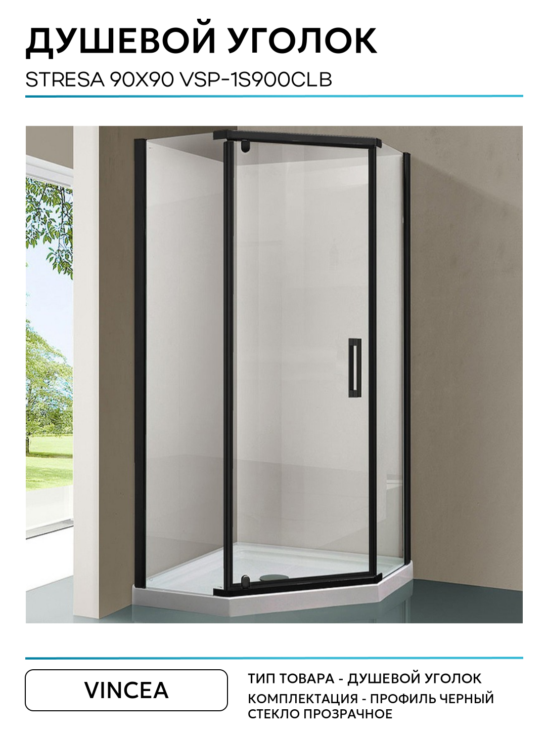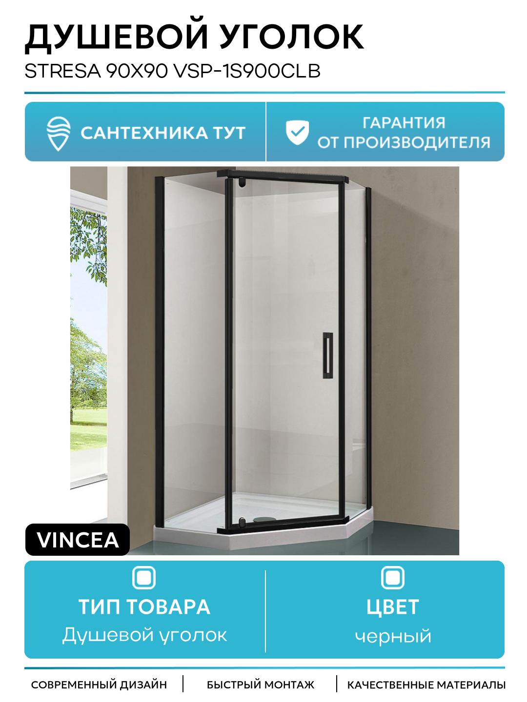 Душевой уголок Vincea Stresa 90х90 VSP-1S900CLB профиль Черный стекло прозрачное черный: сравнение цен, характеристики, фото, актуальное наличие и цены.